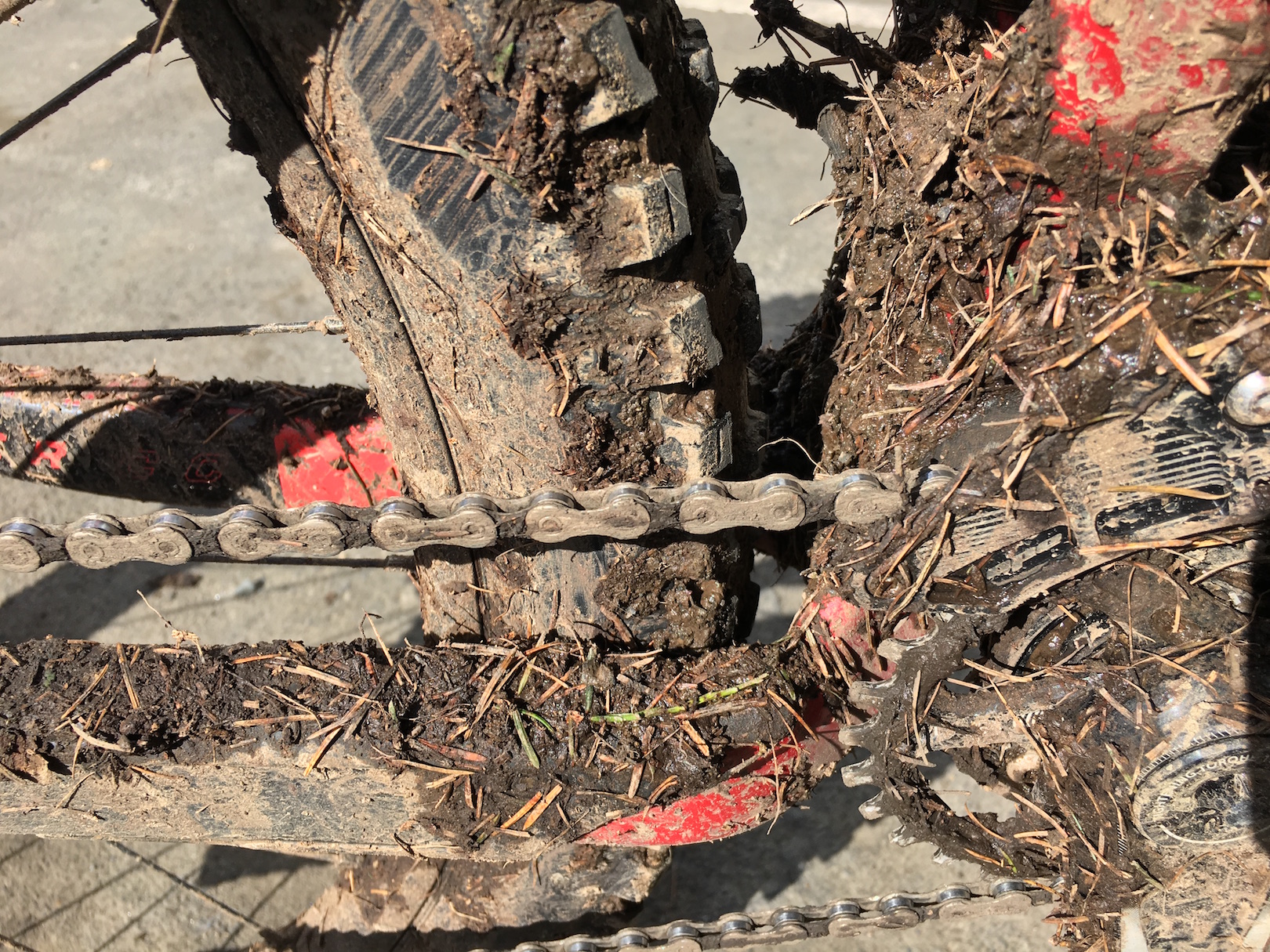 Mud season is a good time to come down in tyre pressure and up in sidewall strength. You will be amazed at the difference it makes. Again, feel free to only chunk-up the front tyre if you’re concerned about rolling resistance. A thin casing rear tyre is actually okay in the mud, where speeds are slower and rough rocks etc are less of an issue.