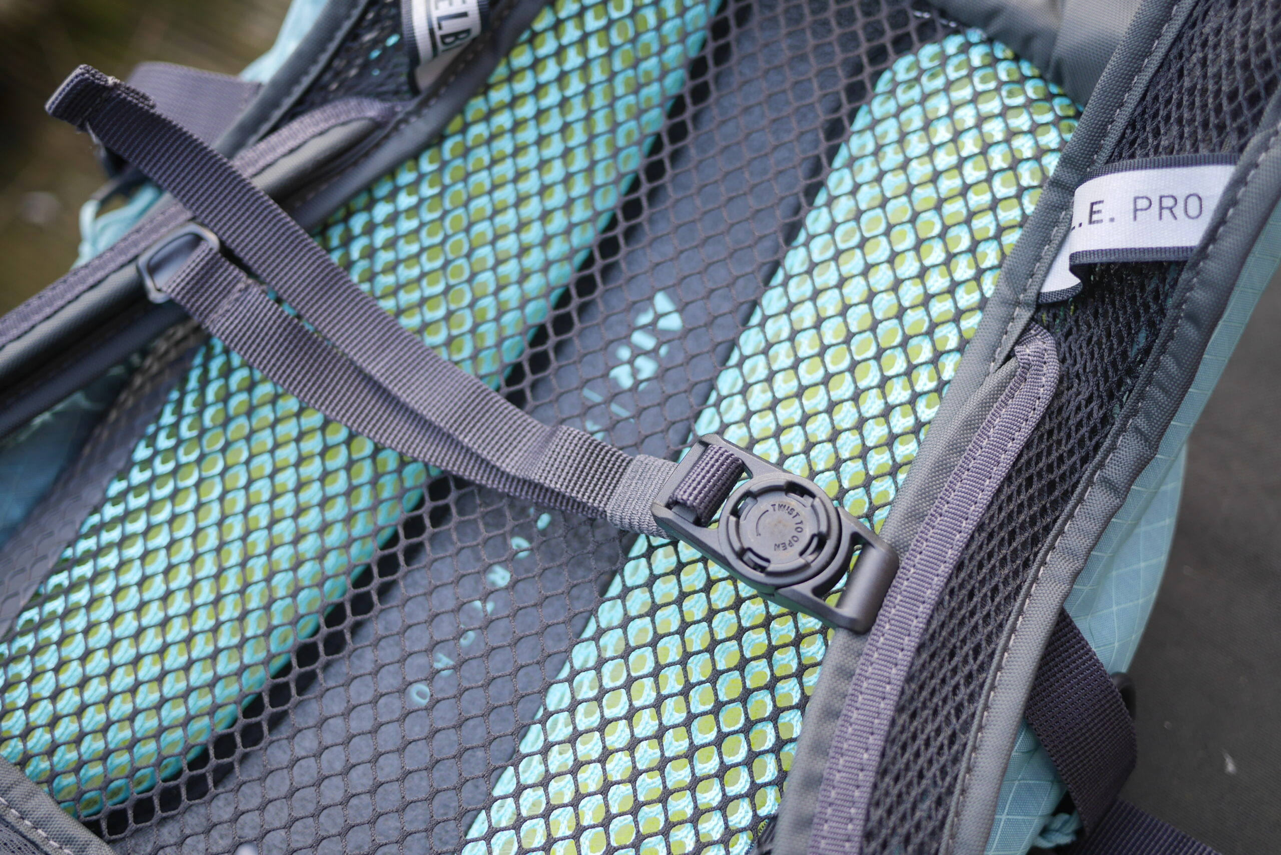 The shoulder harness is S-curved and the whole pack shape is designed with a woman’s torso in mind for added comfort and stability.