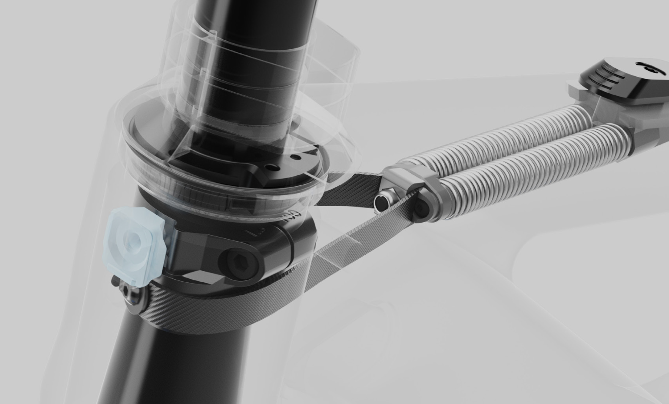 Invented by Jo Klieber at Syntace and engineered by Canyon into the trail ripping Spectral CF 8, K.I.S. is a simple but ingenious technology that uses custom springs, ultra-strong polymer fibre bands, and a precisely shaped cam ring hidden inside the frame to actively centre your bars while riding. Unlike steering stabilisers of the past, K.I.S does not rely on friction, it creates a perfectly tuned centring force to make riding trails smoother, faster, and more controlled.