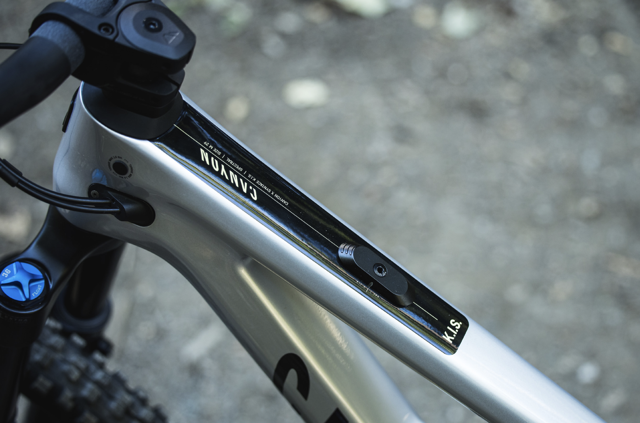 Fully integrated inside the frame, K.I.S. adds a measly 110g of weight to the mainframe and the only difference you will see on the bike is the adjustment slider on the top tube. From here the tension of the system can be adjusted to suit the rider’s size, weight, style, and local terrain.