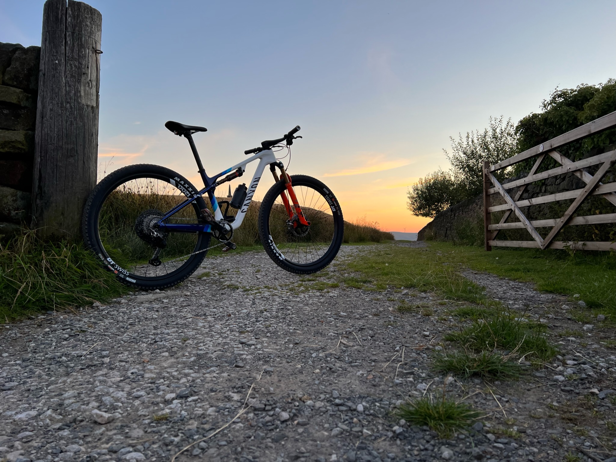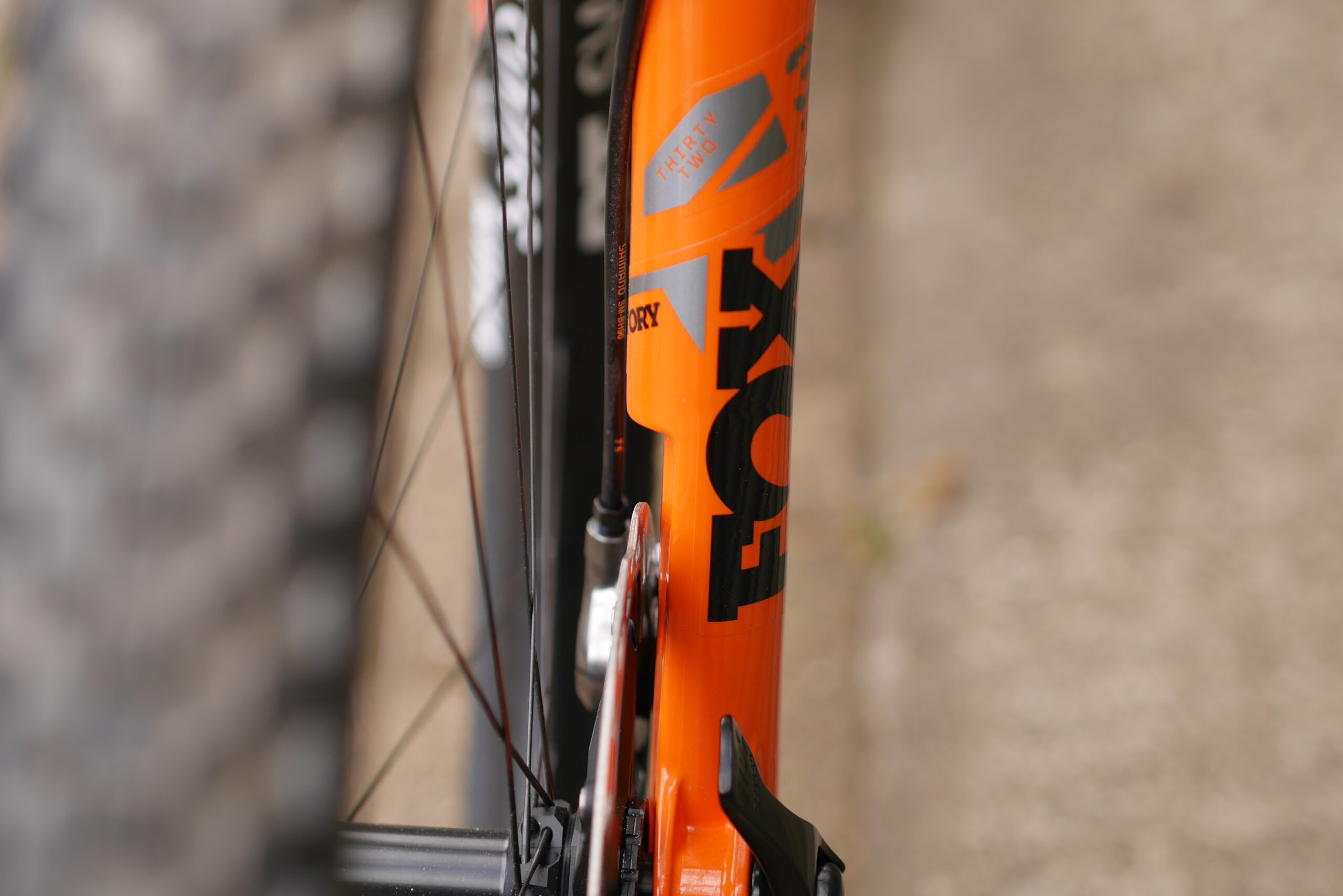 This bike does look quite striking in its orange Fox factory fork, bright white front triangle fading into a deep blue towards the back end. White wheel graphics highlighting the rolling gear whilst everything else is carbon fibre and black. As it should be within the realms of taste; nobody really likes flashy, clashy component colour schemes. They’re so 2005.