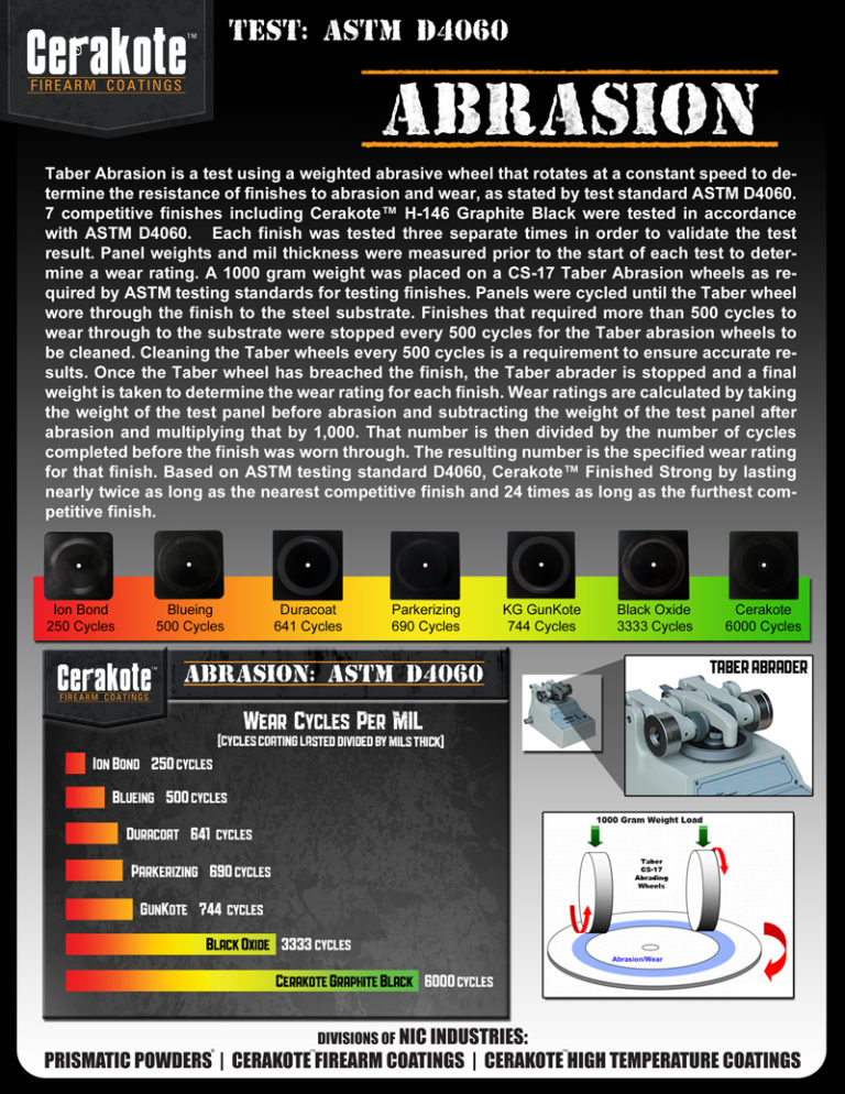 Cerakote also outlasted any other coating in an abrasion test. And impact tests (being shot with rubber slugs from shotguns at point blank range) did not result in any cracking, even though the panels themselves bent and warped.