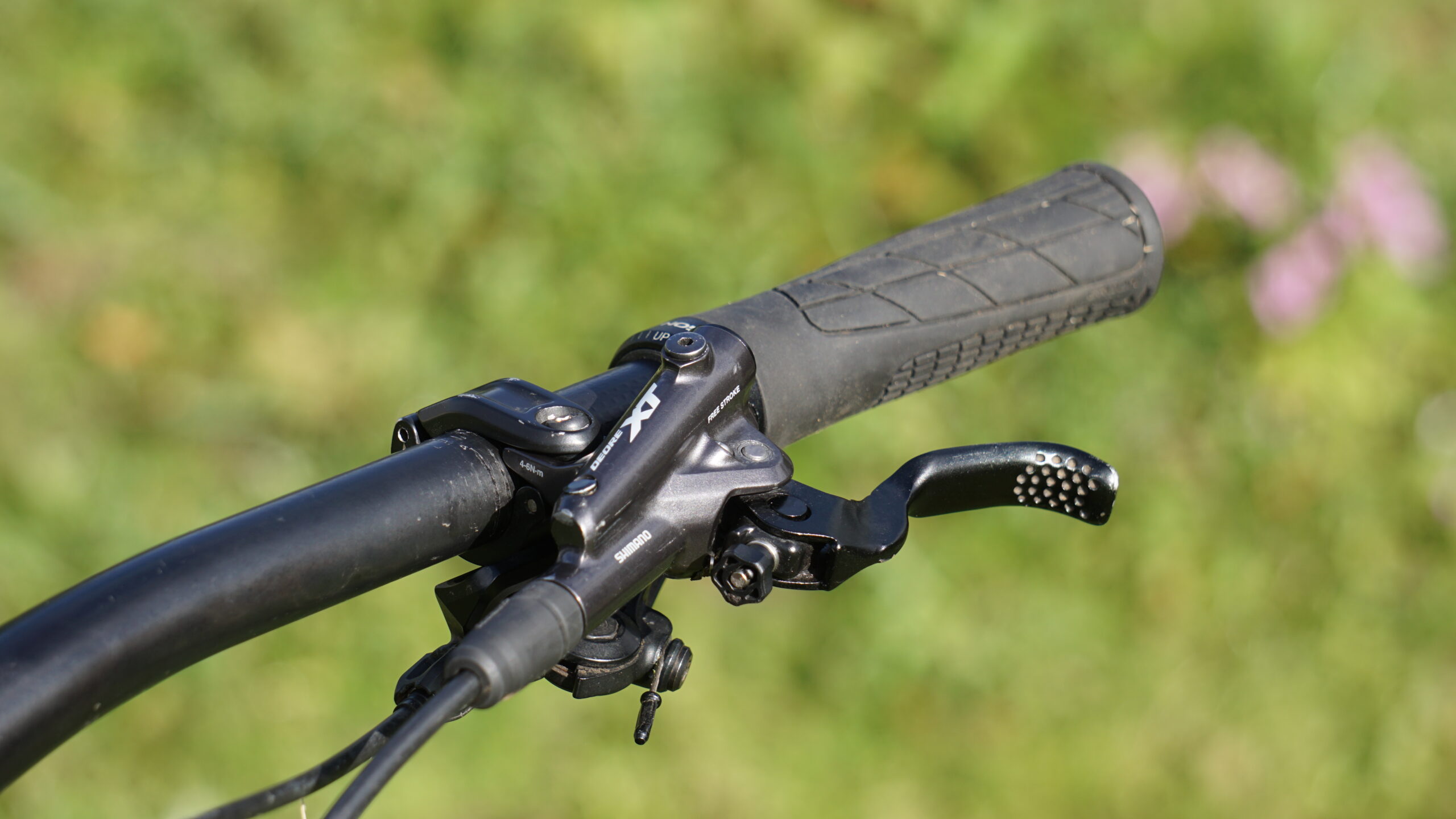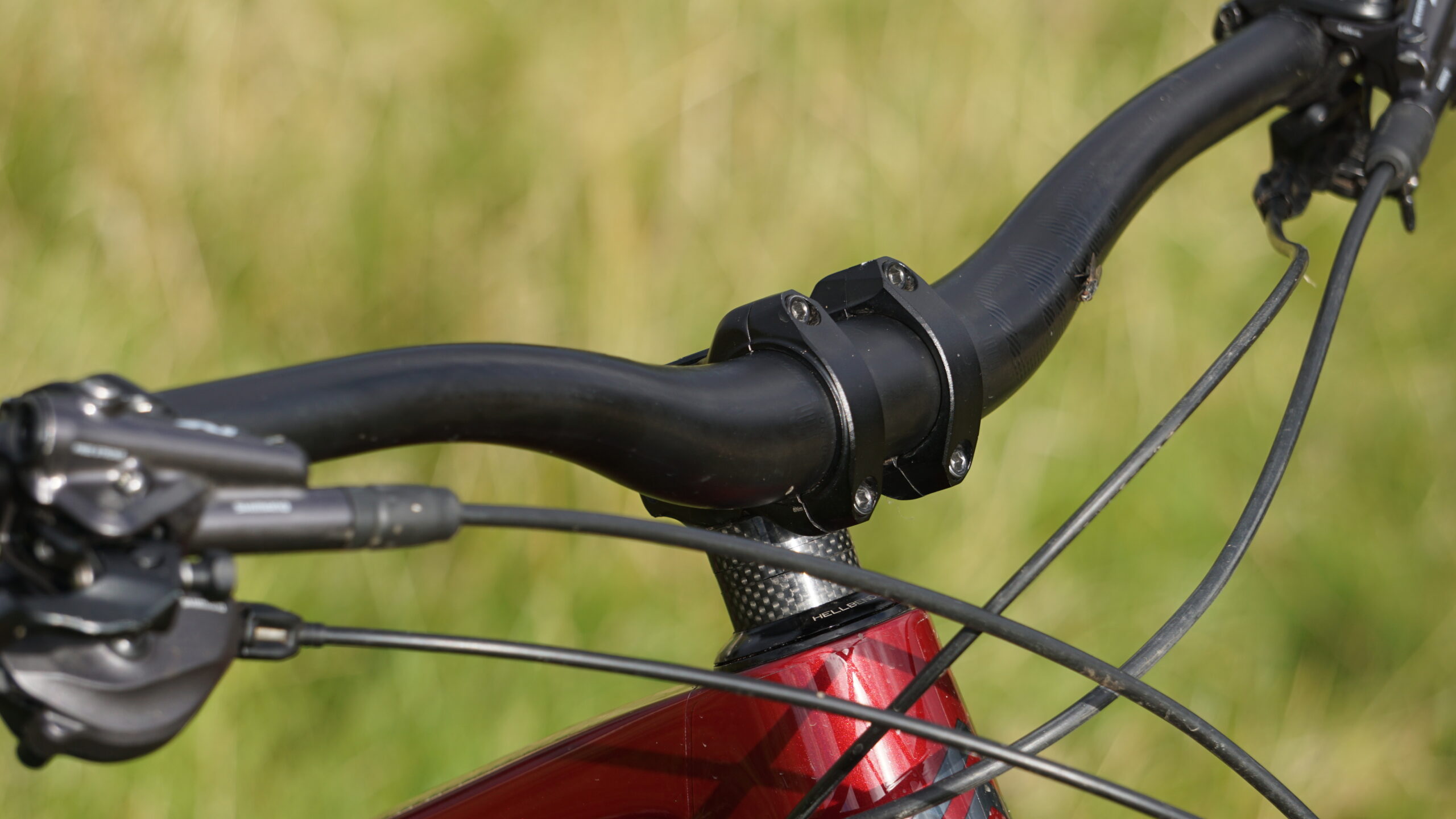 The cockpit was taken care of by OneUp Components with a 35mm rise carbon bar, held in place with a nice and short 35mm OneUp stem. As was the dropper post with a OneUp TwoTen mated to a Shimano lever. Rounding out the components was a Fabric scoop saddle and a set of Ergon grips.