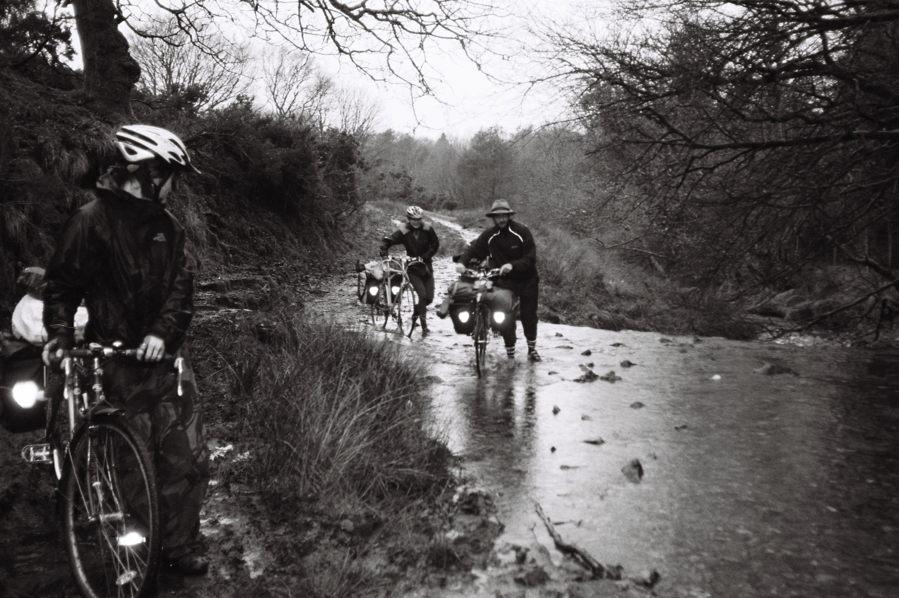 Farmers gave us vegetables – we were vegan (except for the road kill), because we were broke and also because we cooked and ate together. We were constantly fixing everything. Mould and moths ate our clothes, because we were always wet. We always stank, even when we washed! Everything rotted in the fermenting warmth of wet panniers, and developed a very particular aroma that can be associated only with cycle touring. Something like second-hand cauliflower curry, soggy oatcakes and thick puddle water. Shoes were always the weak link; no matter how much shoe goo and pound shop gaffer tape we adorned them with. String, glue and rubber bands, unduly ‘edgy’ campfire haircuts and heated debates on hygiene (or the lack thereof) and its effect on bowel movements. We lived like kings! Or peasants? Everything we needed we had. Because everything was constantly falling apart, we became fluent in repair. The nightly repairs were our TV. Nothing was new, because nothing new would work. Anything new would be utterly incompatible with our rot and our rust and our time-stained, weather-darned, wretched splendour.