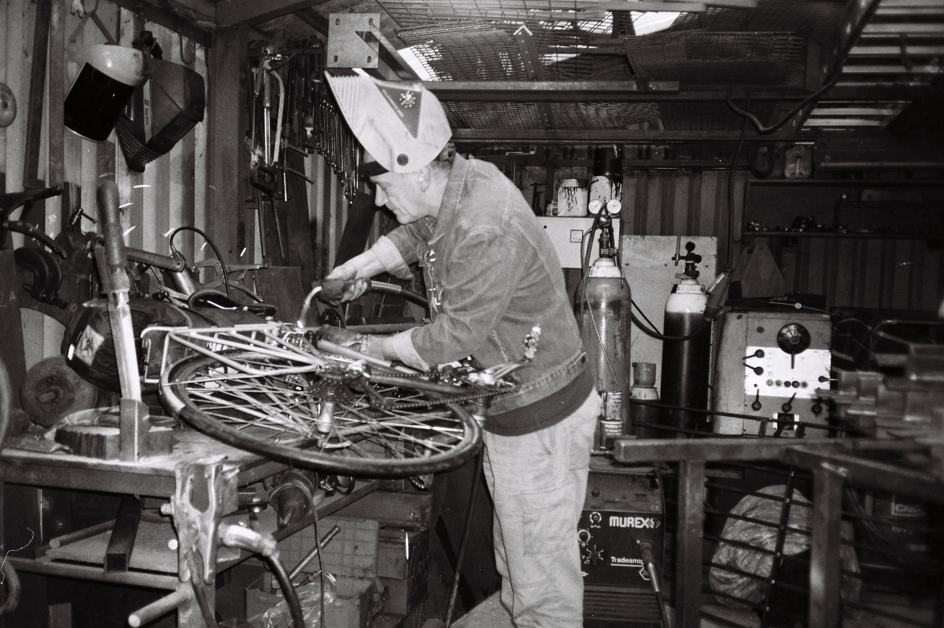 Three months was ideal. We met permaculture smallholders and built fruit nets for scientists using small-scale cattle farming to increase biodiversity and trap atmospheric carbon in soil. We climbed wind turbines and learned about hydrogen fires and submarine batteries, but most importantly we were time rich and money poor. Not one of us had any semblance of appropriate equipment – our seven-speed racers and janky, low-grade mountain bikes were falling apart, frames straining and twisting under the load. We begged, borrowed and bartered, with bike shops, bartenders and tube benders.