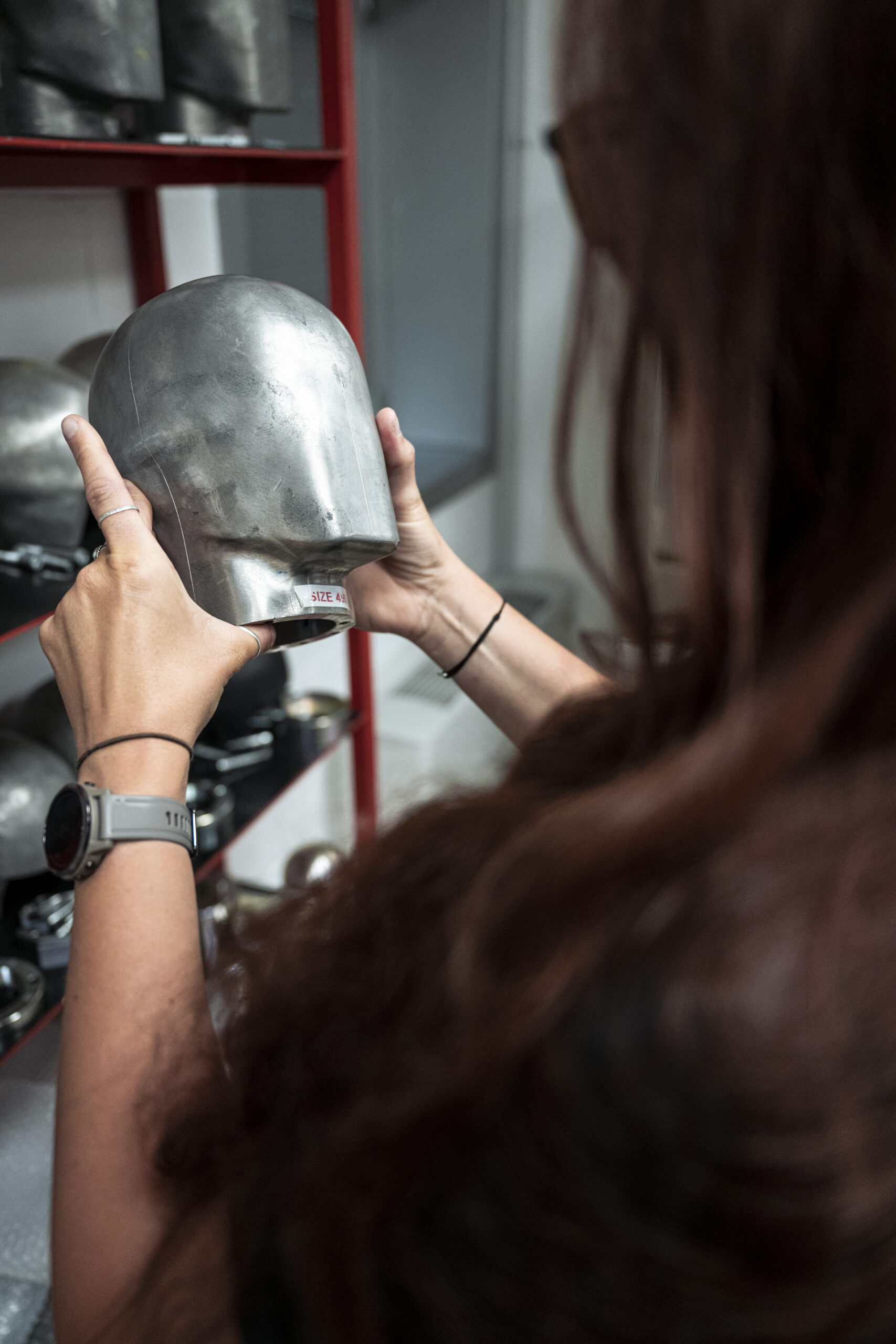 Product design starts with a ‘mood board’ – usually photos of shapes, structures and textures that will inspire the next design, notably a sports car orientated one at the time of my visit. Aerodynamics, air intake, smooth fluid lines are something that transfers well from car to helmet. Matteo Tenni, Project Manager, explains how they take influence from motorsport design and ultimately end up with a 3D sample of the helmet, to see how the drawings translate to the physical. This would be a very elaborate stage of design so early in the process, if it weren’t for the in-house 3D printing facilities.