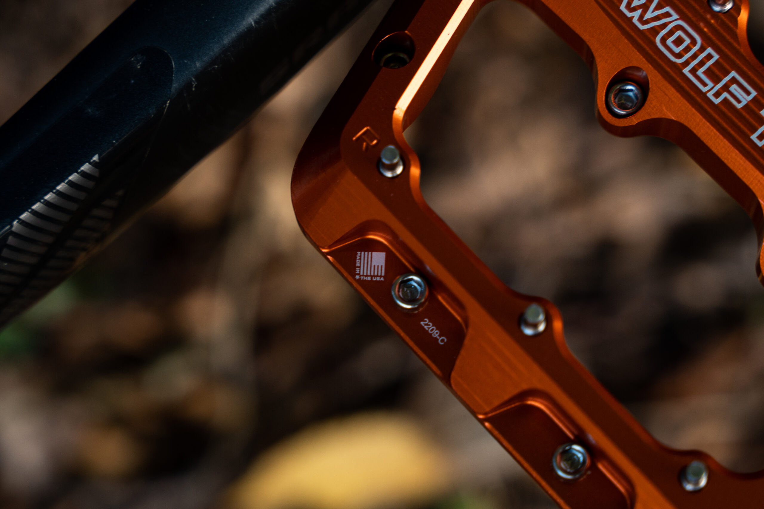 Waveform Aluminium pedals are designed, machined, assembled, and shipped from Wolf Tooth in Minnesota. Each 6061-T6 aluminium pedal body is machined one at a time in our CNC mills. These are the same mills that create our chainrings, multi-tools, and more. The 17-4 PH stainless steel axles come from our lathes which also make Wolf Tooth headsets, seatpost clamps, and axles. The Wolf Tooth assembly team compiles all the parts and assembles each pedal by hand. The entire manufacturing process has multiple quality- control checks along the way to ensure that each pedal meets our high, precise standards.