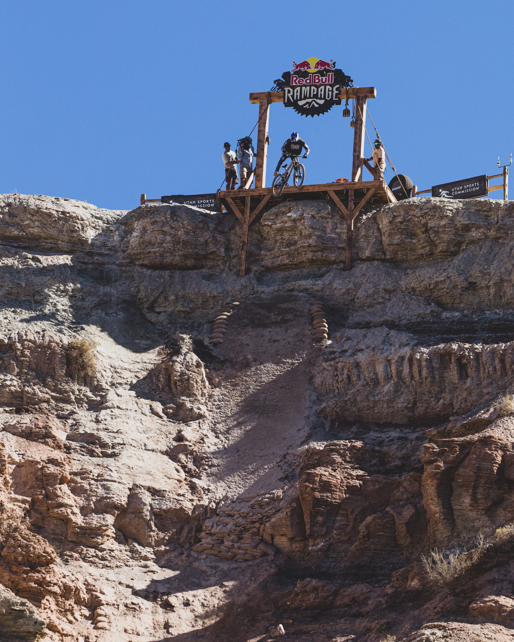 It’s a cliche to talk about the scale of the mountain at Red Bull Rampage, but so what. Look at it. Spot the rider, spot the landing?