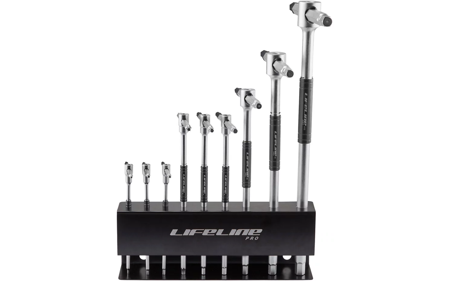 “The LifeLine Pro Sliding T Bar set features a selection of Allen/Hex heads and a T25 Torx head. This Hex set is ideal for a wide range of bike maintenance tasks and will get your fitting bolts and nuts tightened and ready for the next ride.”