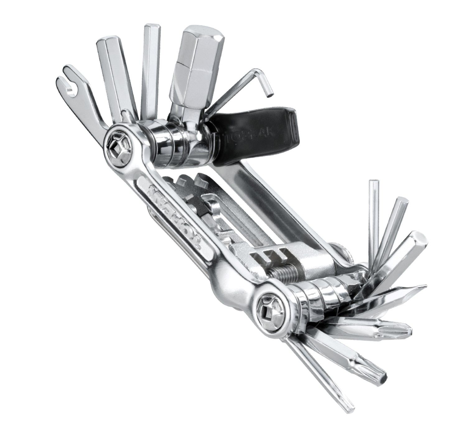 “The Topeak Mini 20 Pro Tool is a high quality forged aluminium multi tool with all of the key tools you need for fixing any problems when out on the bike. An integrated, cast CrMo chain tool forms a low profile, snag-proof shape.”