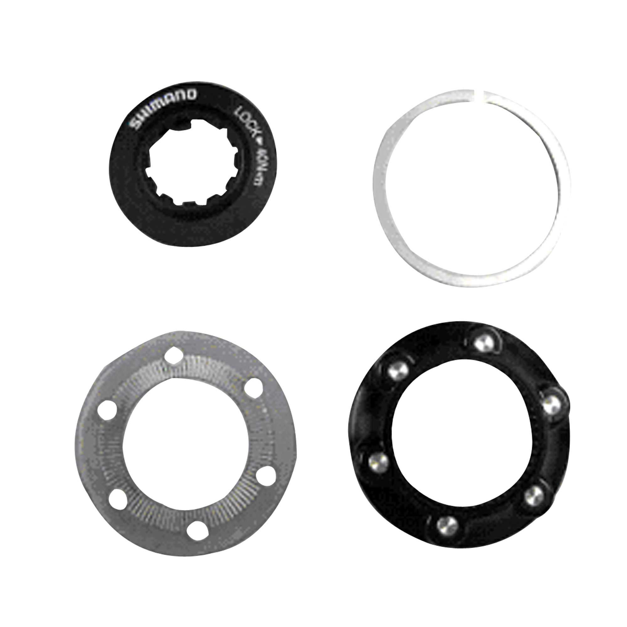 “This handy Shimano convertor easily and neatly adapts your 6-bolt rotors to fit on to Centre-Lock hubs. It uses Shimano’s proven Centre-Lock lockring fixing system for quick and easy disc rotor installation.”