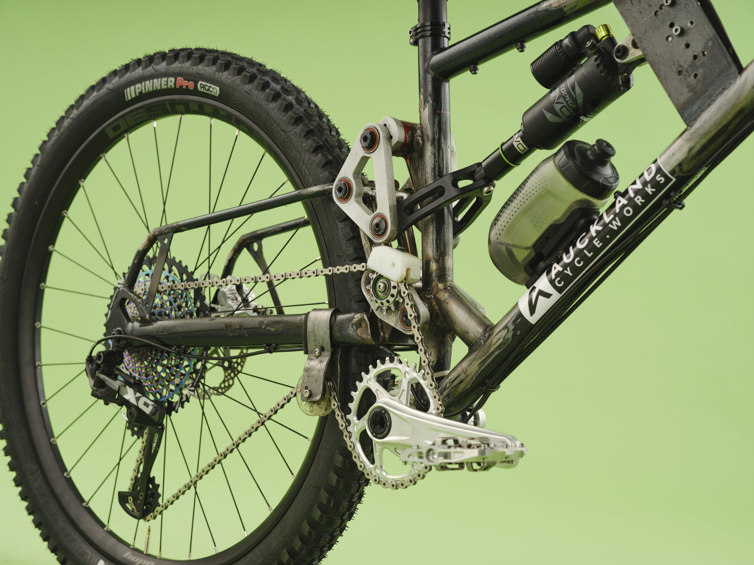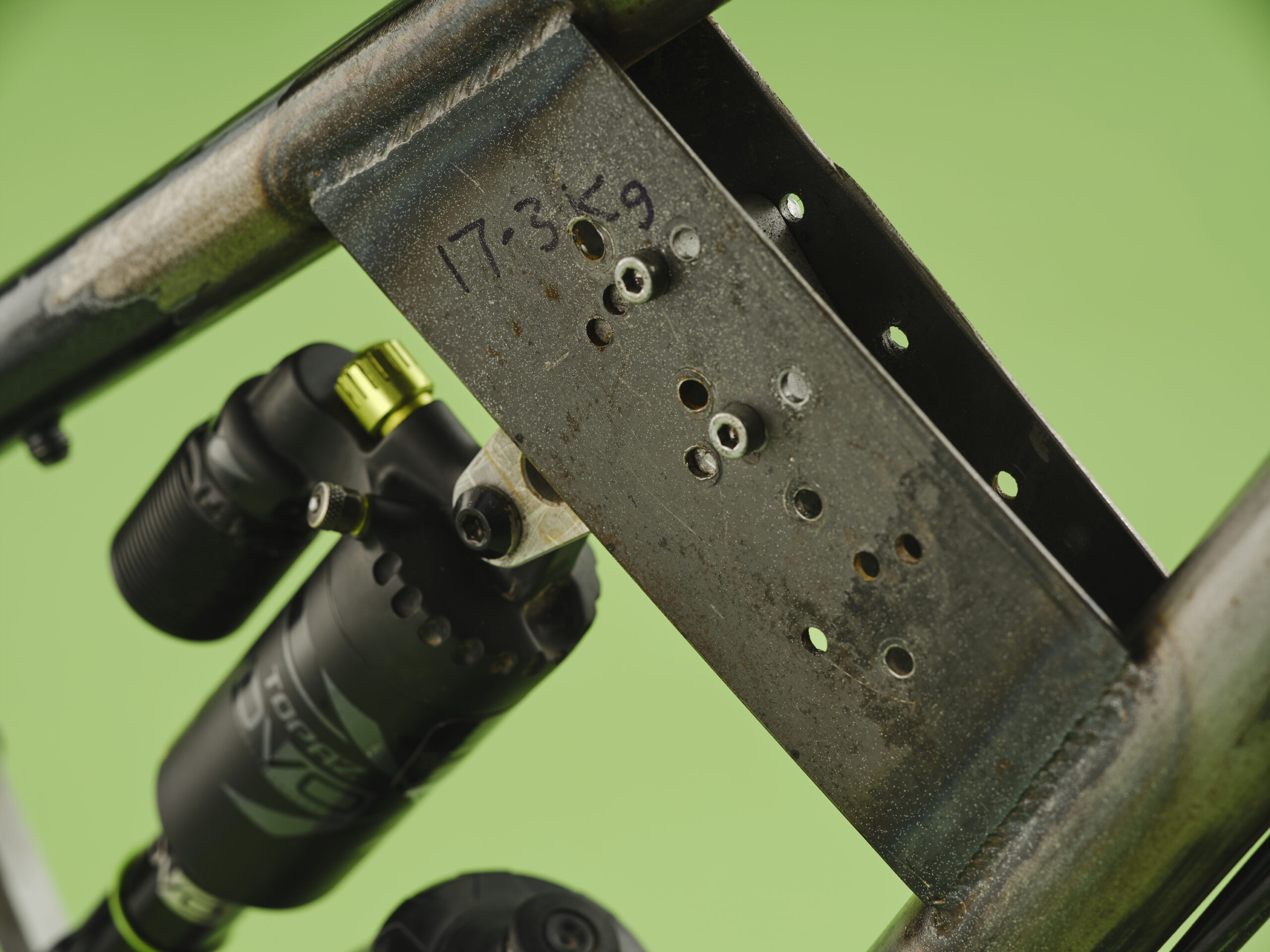A mad max of bikes, designed with the assistance of Lego, built to demonstrate the Kolarp suspension system.