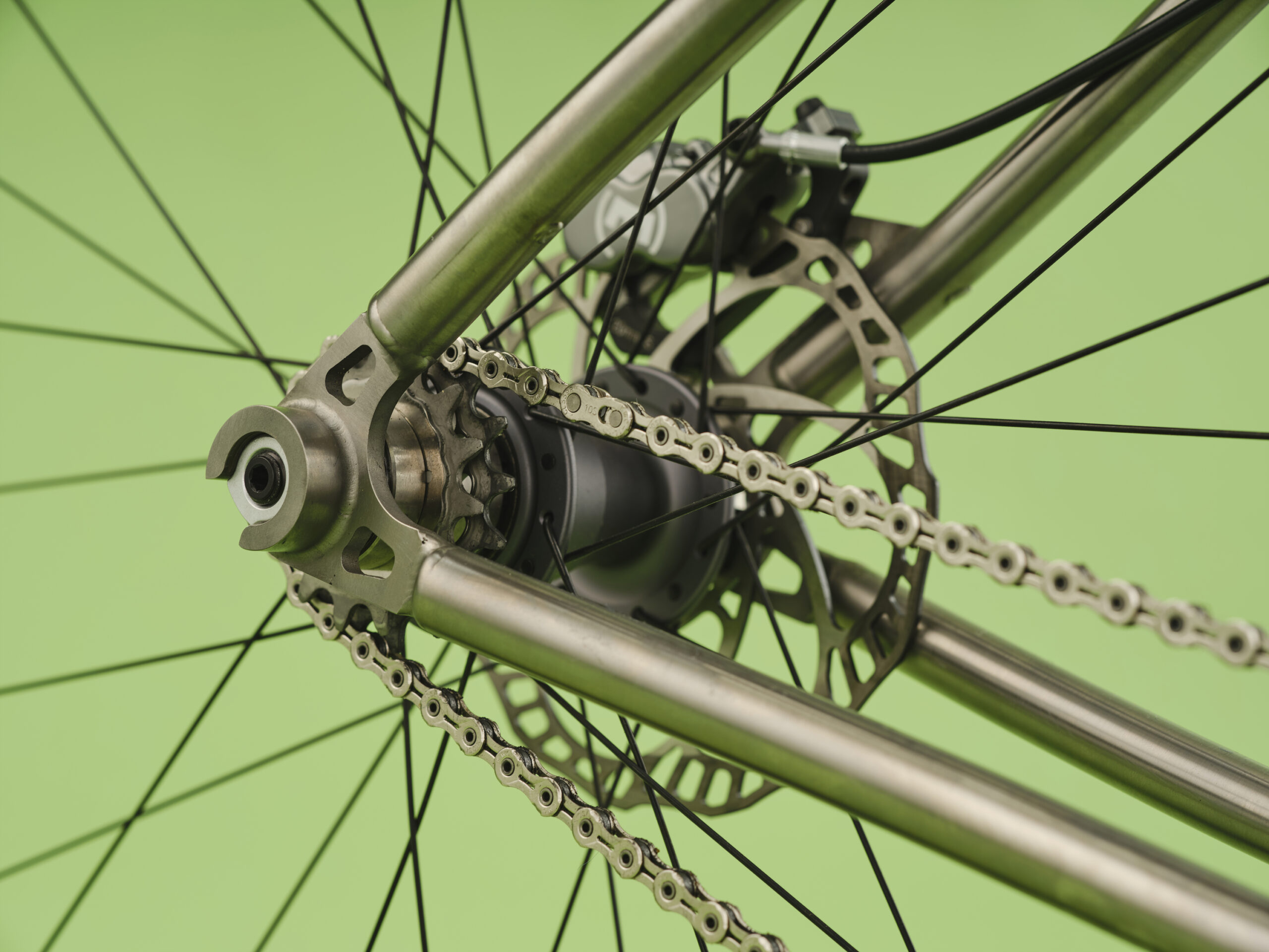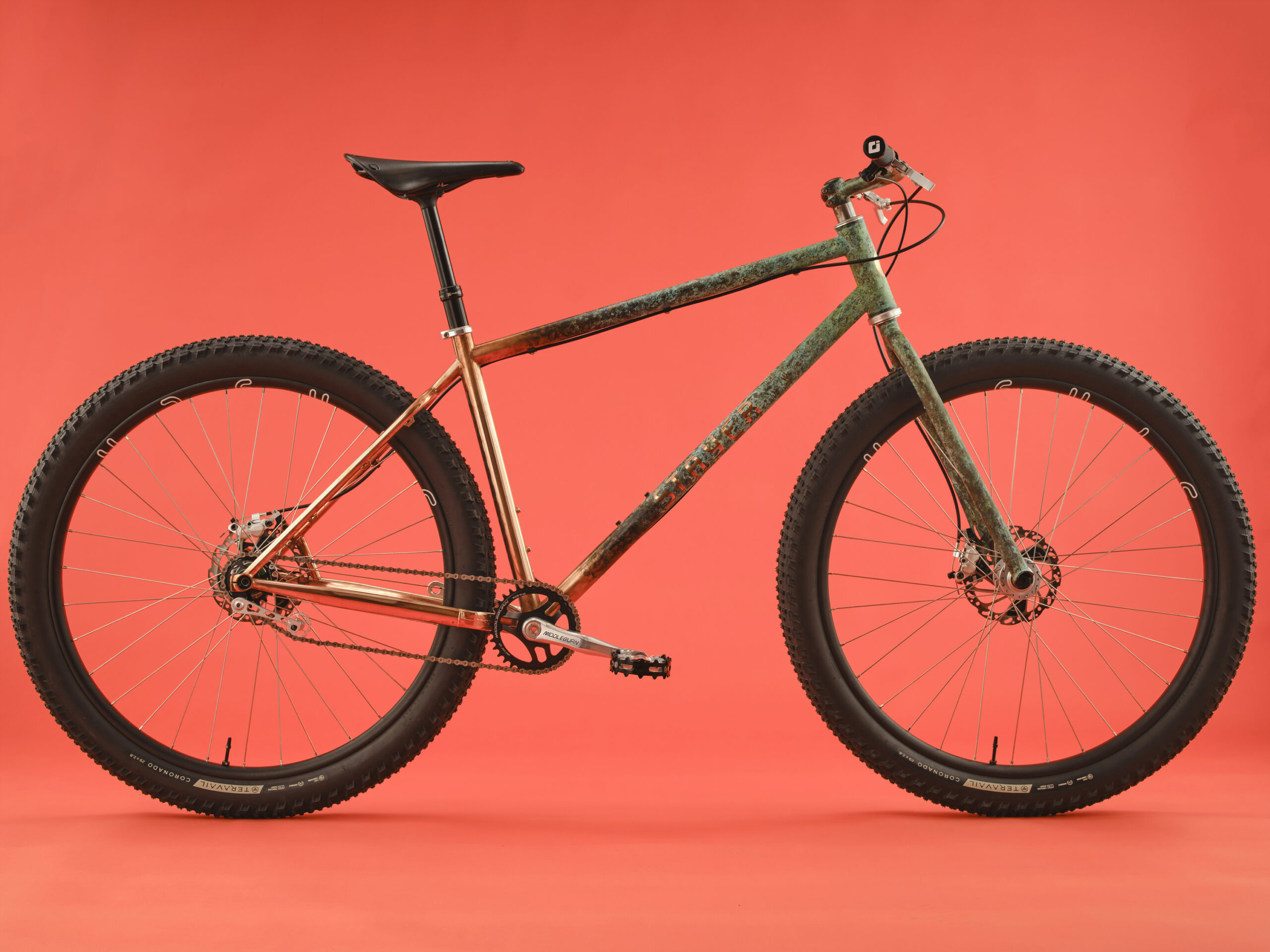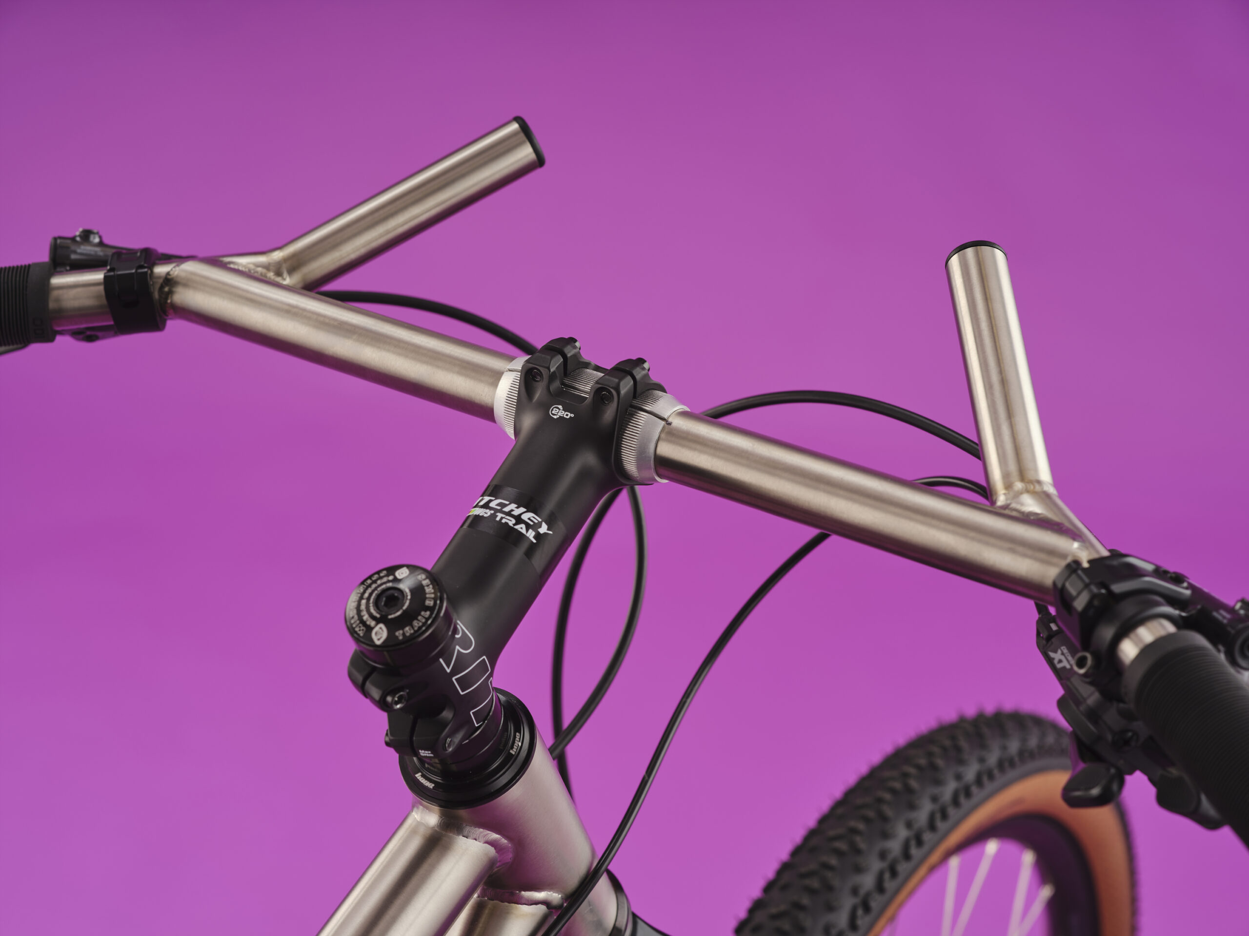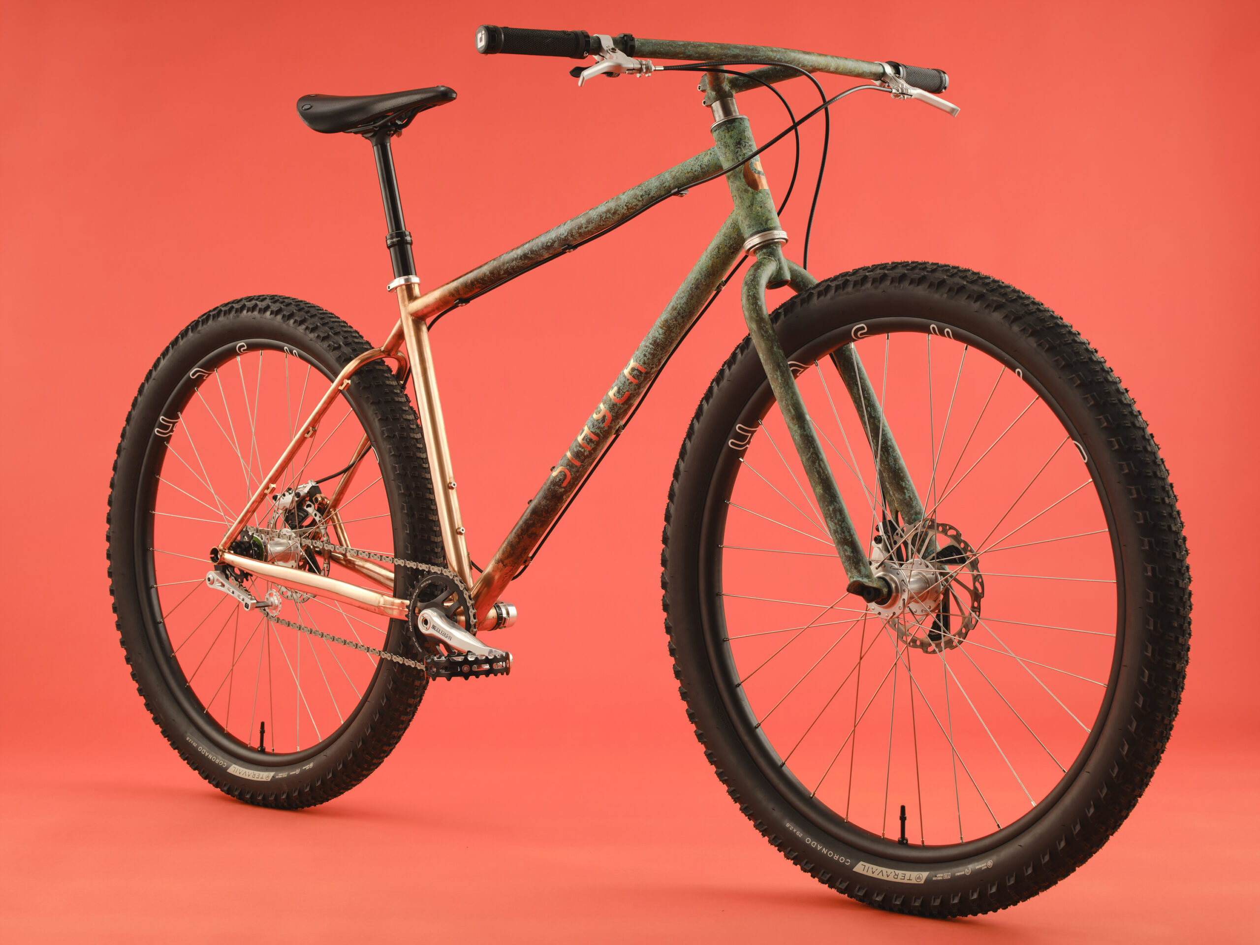Lugged titanium travel bike, for cruising the streets and trails of the world. Super short back end for wheelies.