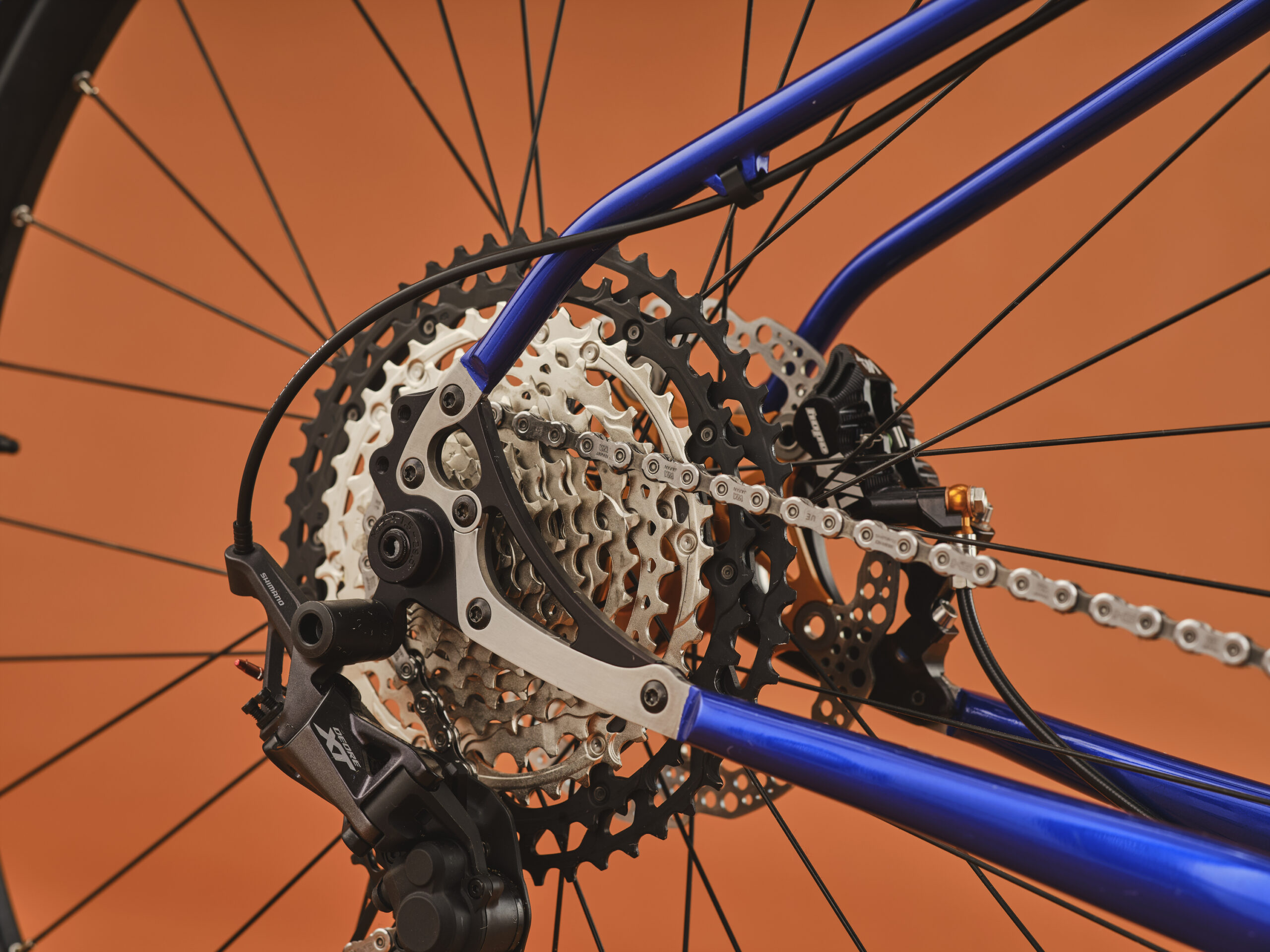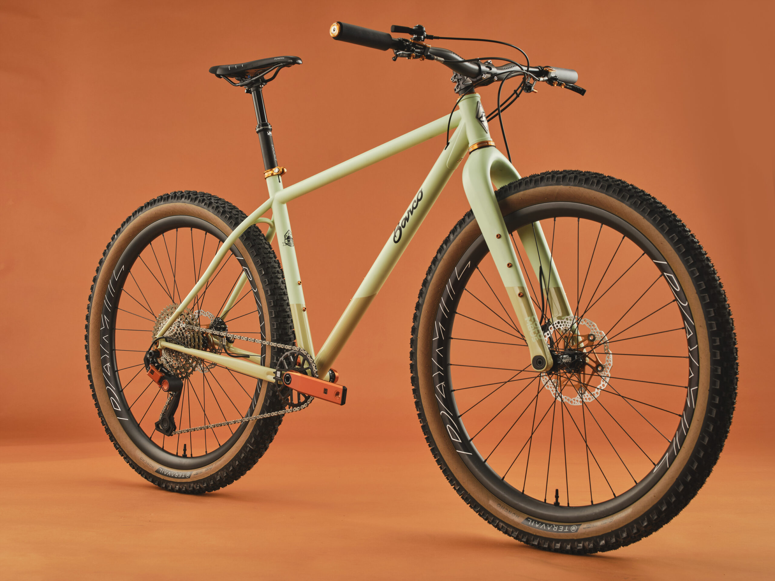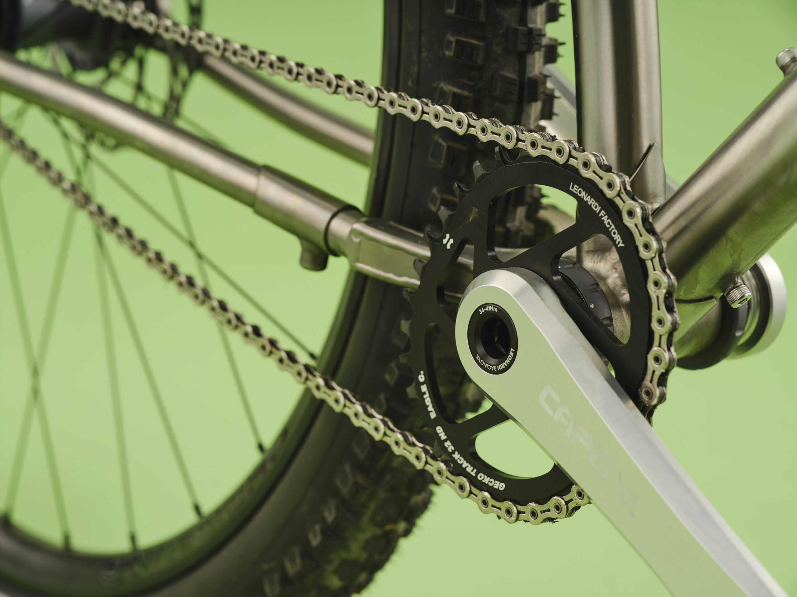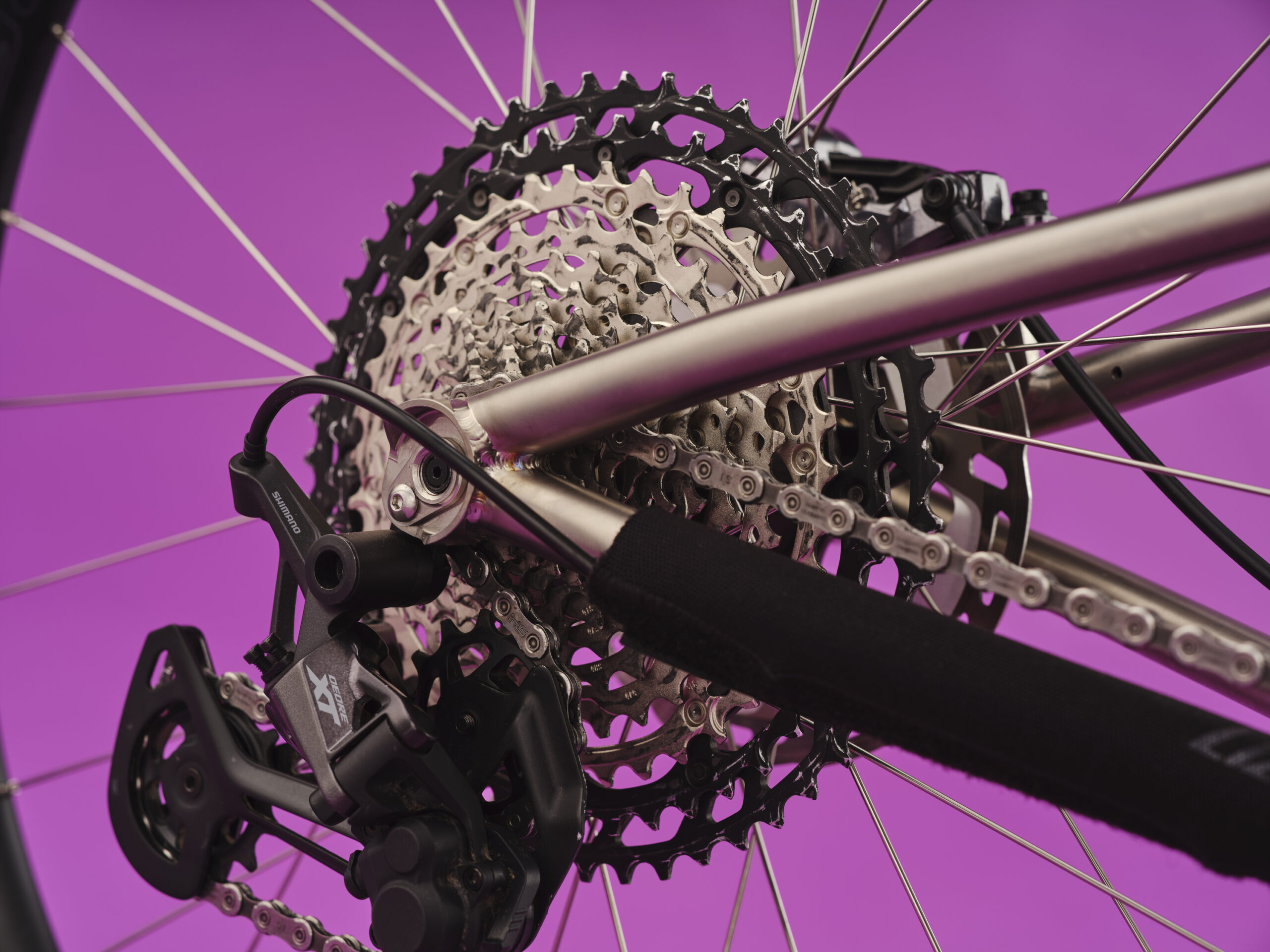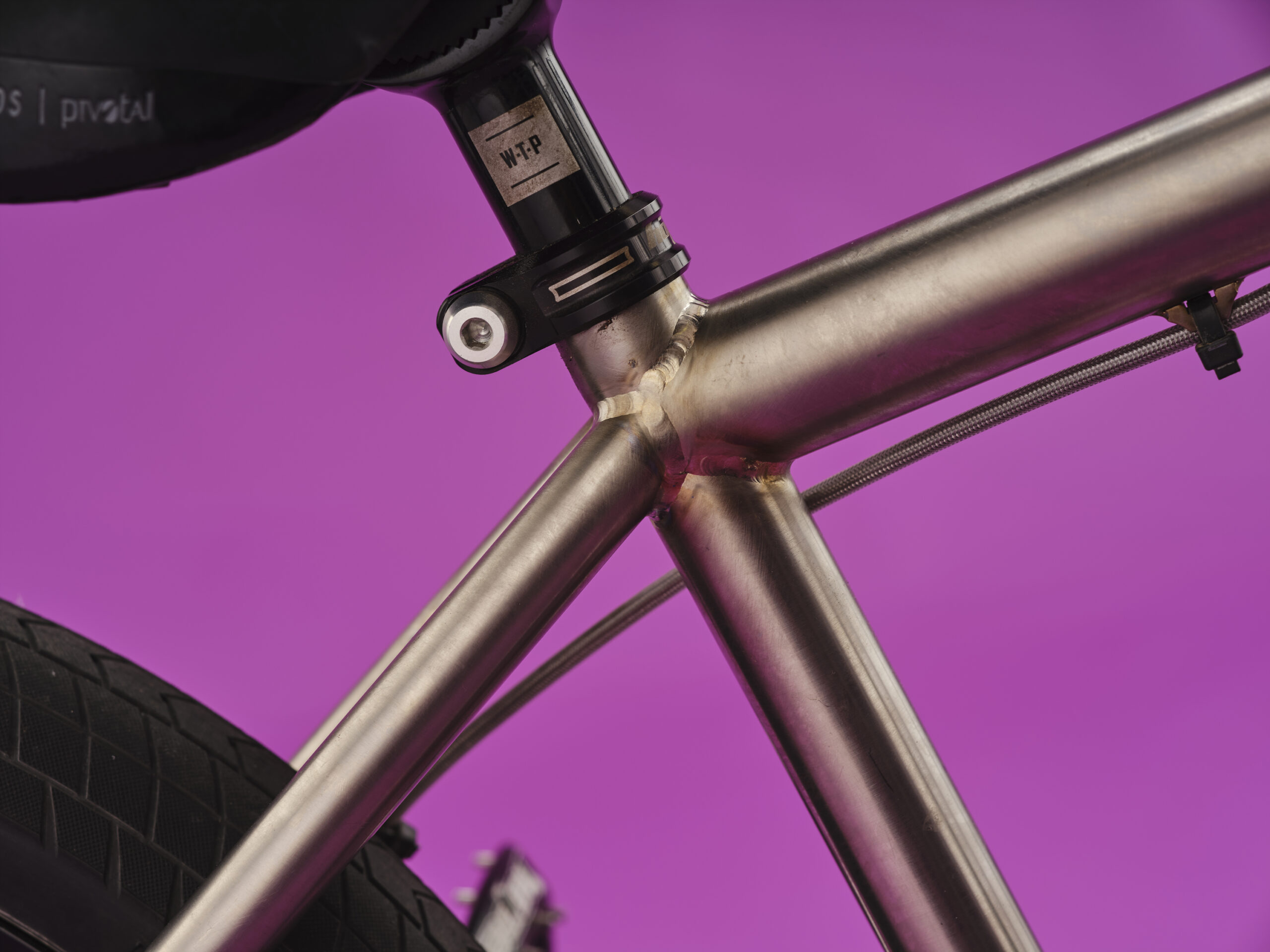 Lugged titanium travel bike, for cruising the streets and trails of the world. Super short back end for wheelies.
