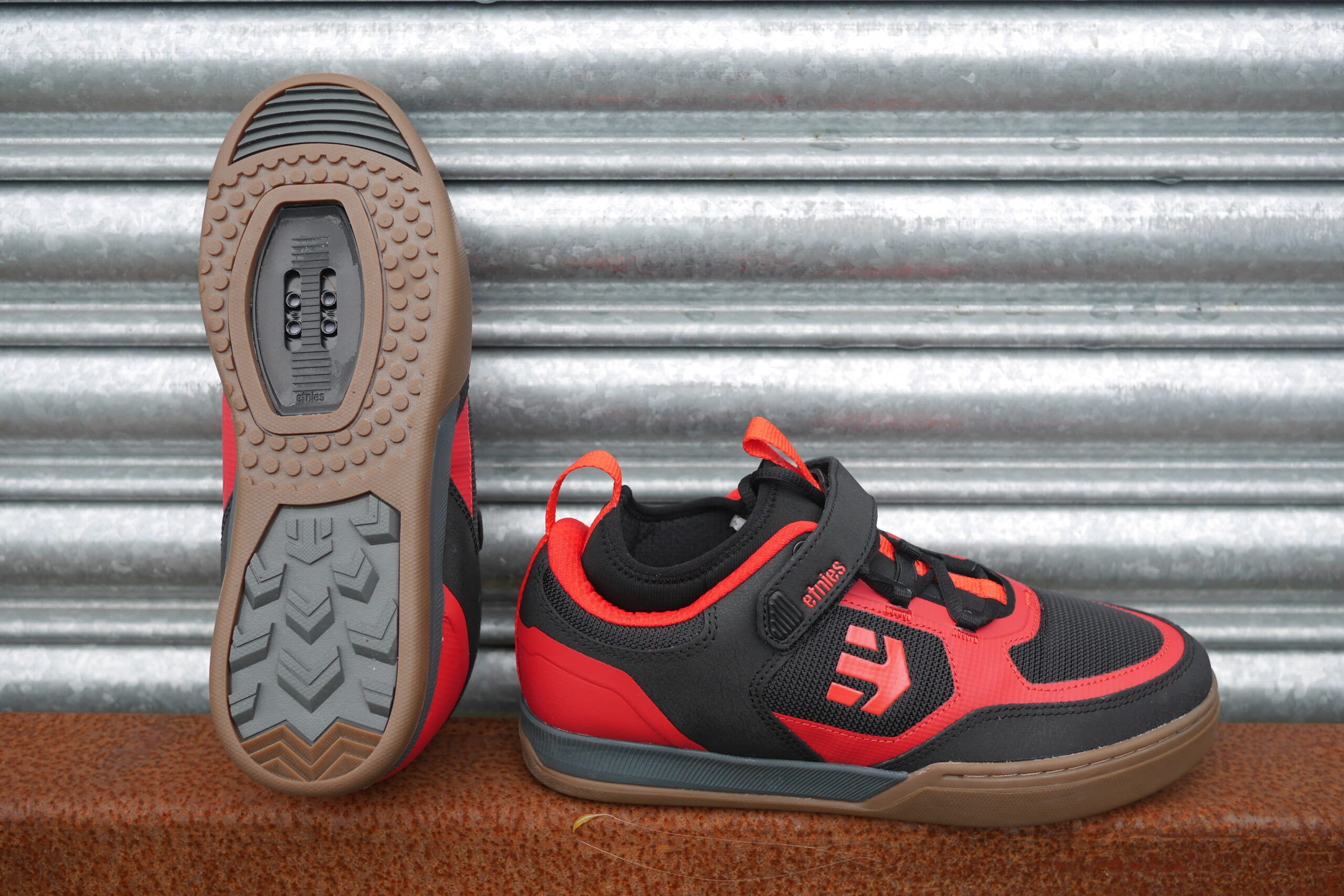 Designed by Brandon Semenuk himself apparently. Cobblers, you might say (boom tish!) Tread pattern designed for ‘multi-placement pedals’. Force Shield reinforced upper. A ‘hot-melted quarter panel’ with repel treated upper that blocks moisture. Thinsulate lining and tongue gussets that shields moisture, dirt, and pebbles. Ankle Shield protects your inner ankle from clonks. Lace pocket on top of tongue and Pro Foam 1 molded PU footbed.