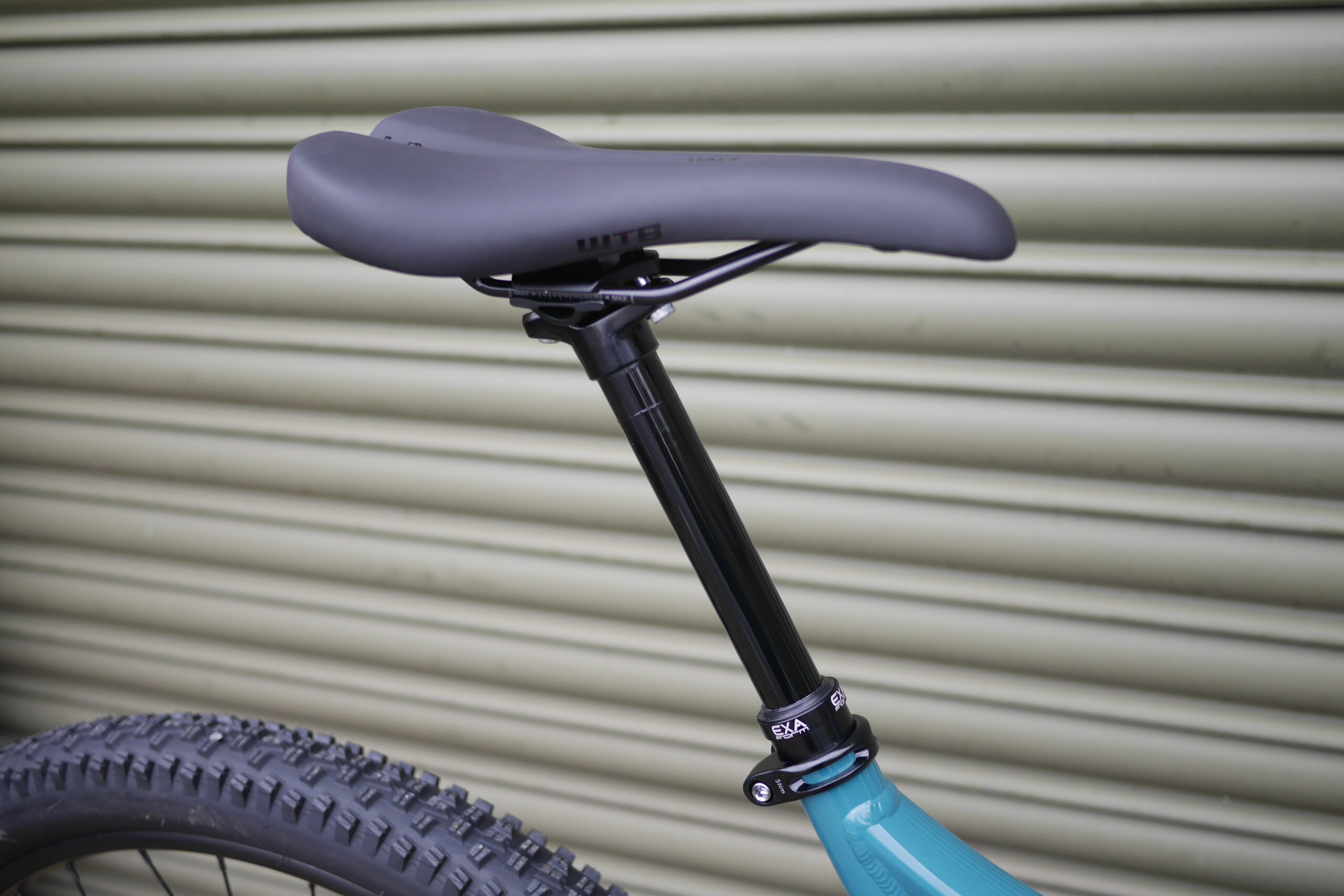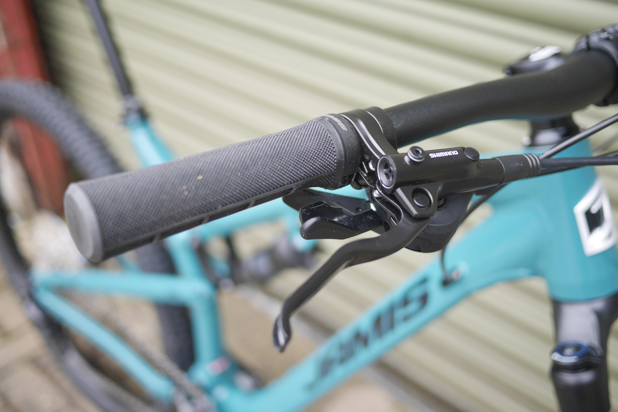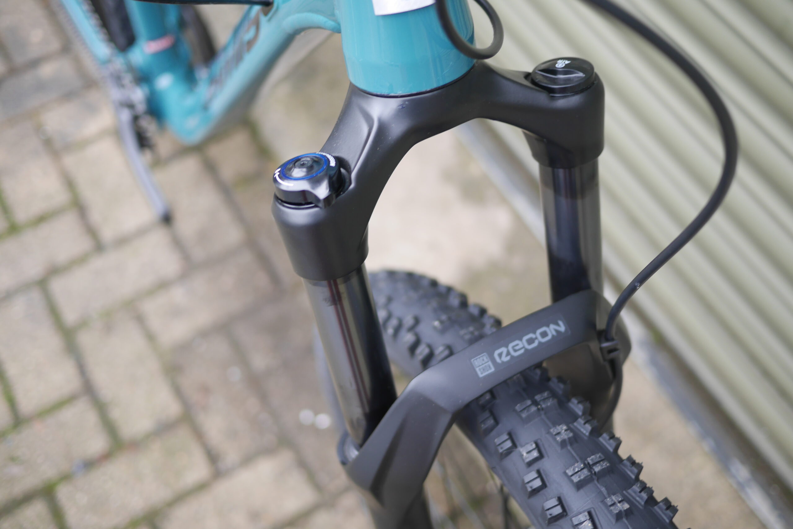 £1,800 (or £1,600 if you’re prepared to sell your soul and join as a Go Outdoors member). 120mm rear travel, 130mm fork, 29er. And sure, there are some obvious compromises here. The seat angle looks a bit retro. The rotors are those ‘resin pads only’ ones. But in general, colour us impressed. Especially with the colour. Looks a bit paler than it is in these pics (blame Panasonic). Kudos for that excellent chunky head bage too. It is gert lush, as they say… somewhere.