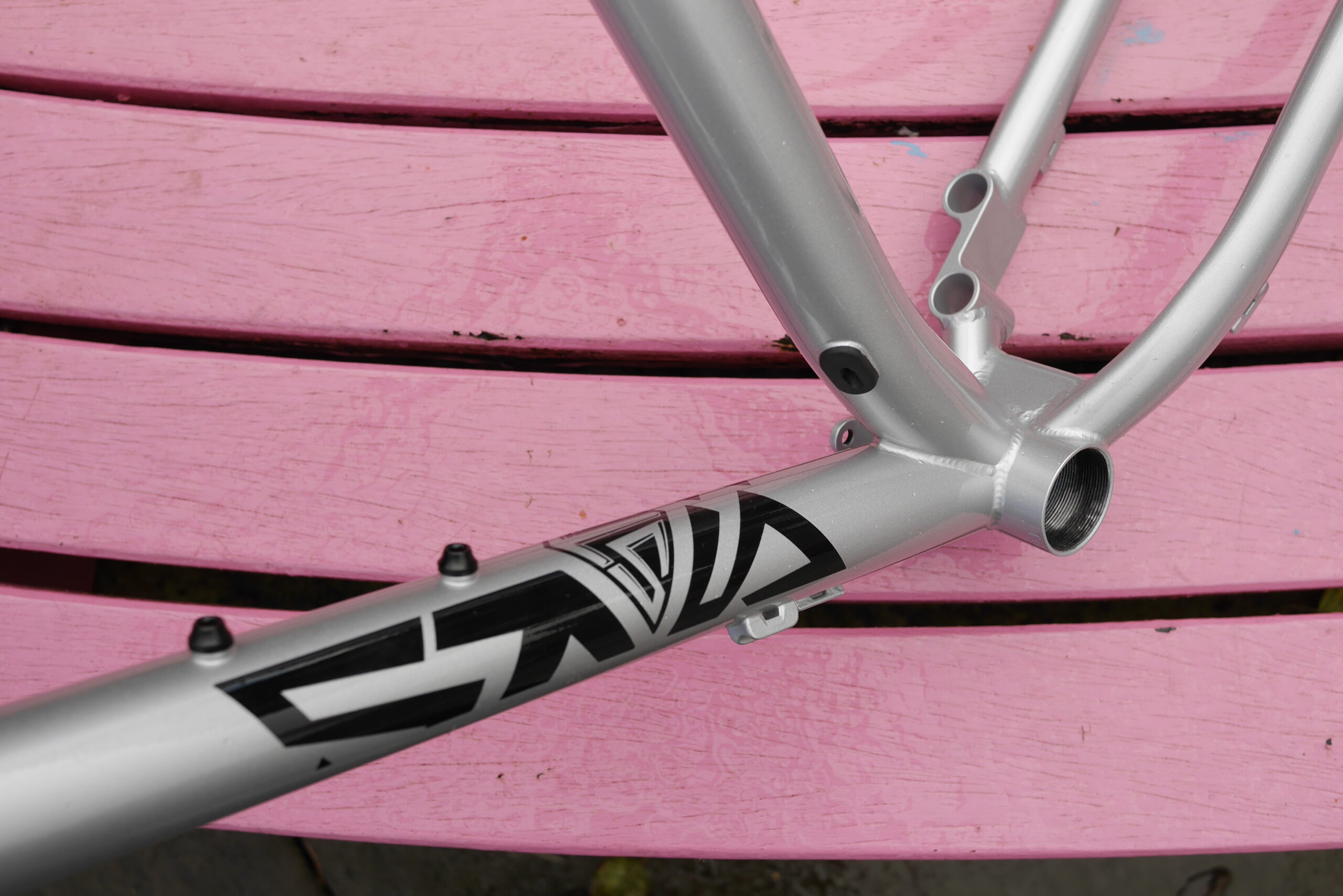What else? Good dropper insertion. External routed cabling (apart from dropper finale, obvs.). It’s silver. And it has a proper headbadge.
