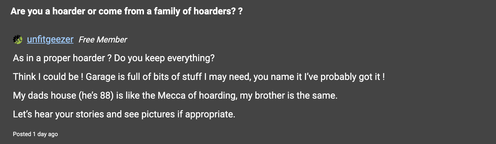 This week’s winning forum post is from unfitgeezer. Surly it’s not hoarding if it ends up beng useful (12 years later)..?