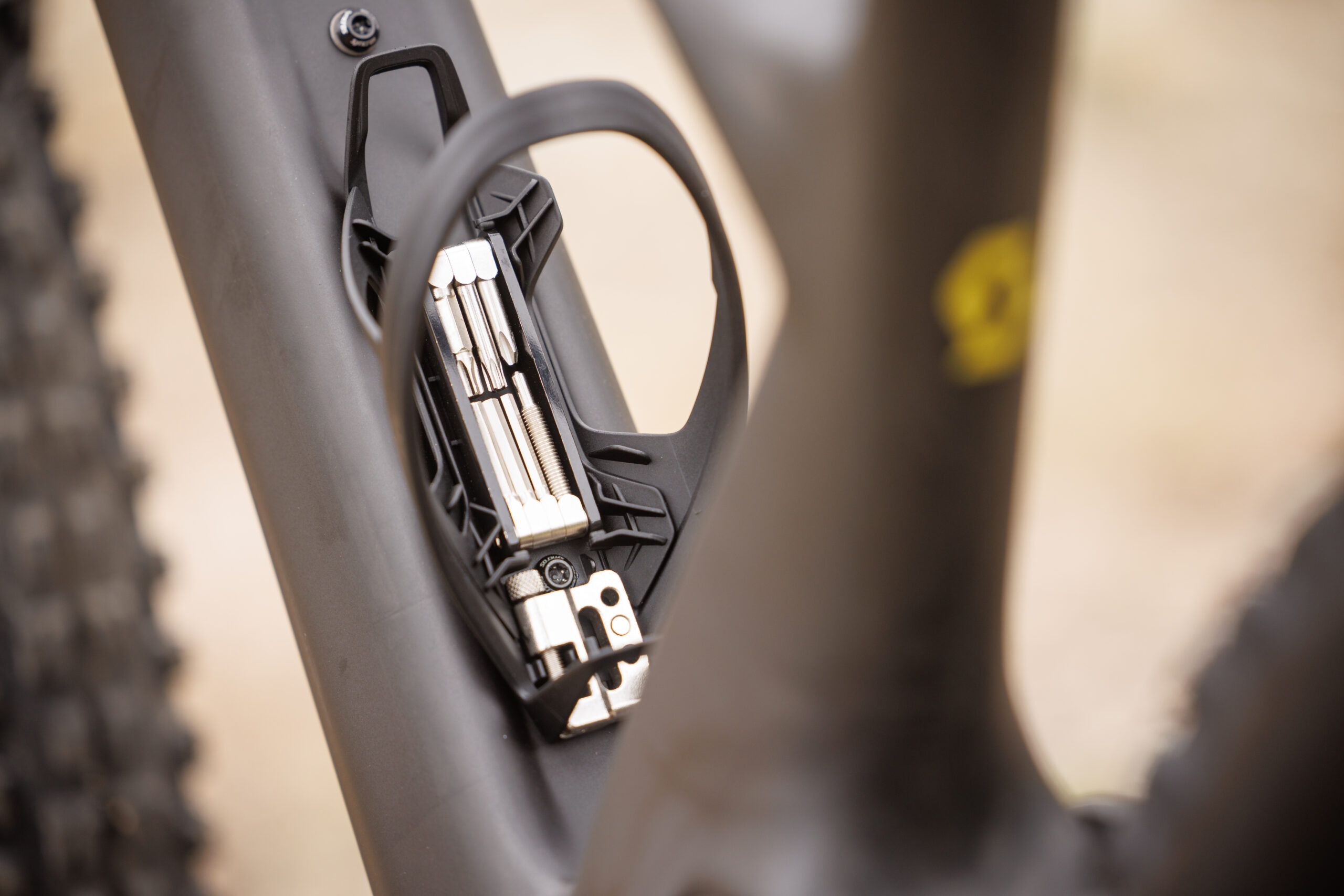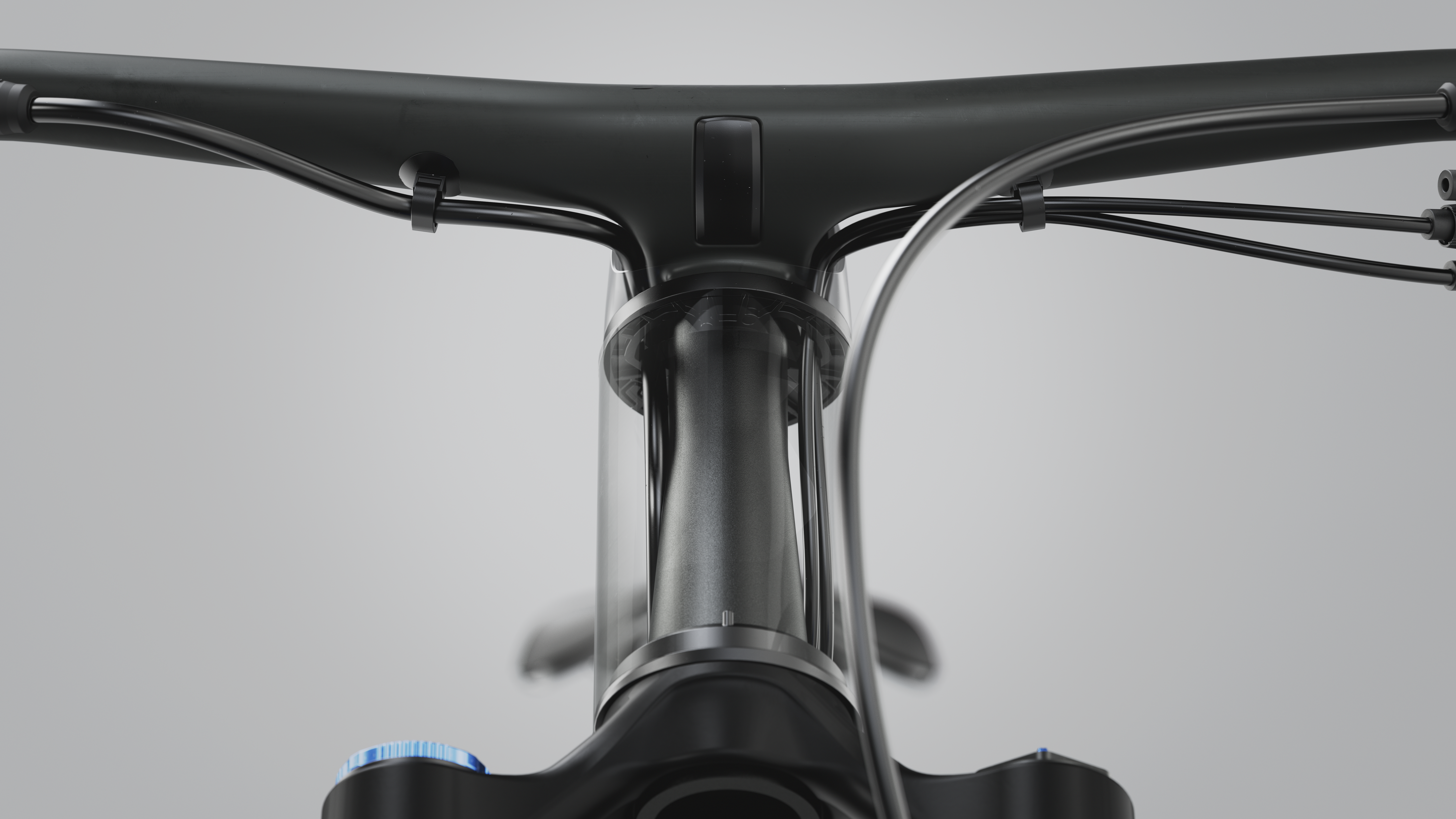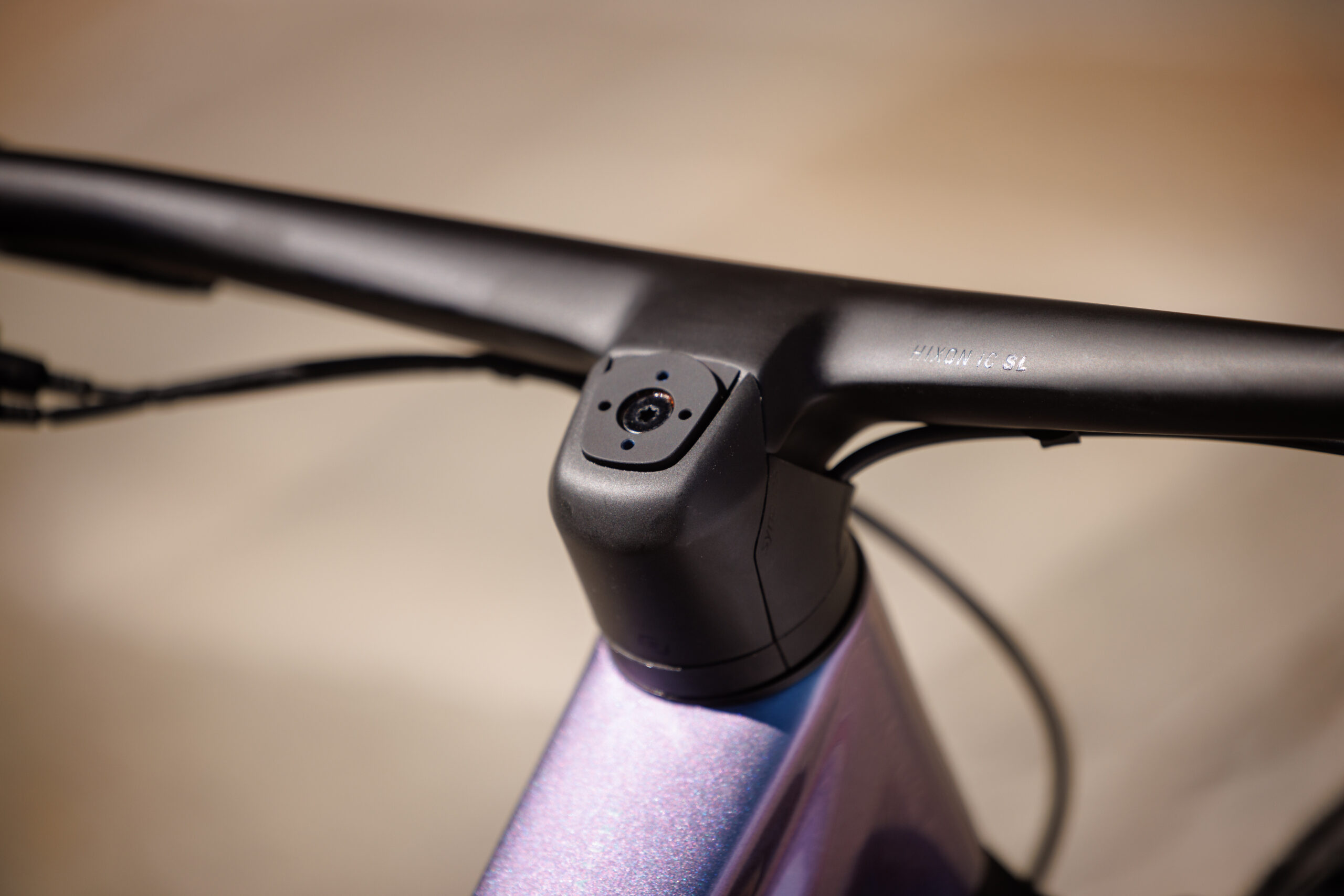 The Genius features a Hixon Cockpit from Syncros which has undergone a redesign, with refined ergonomics for both backsweep and upsweep, two options for rise depending on frame size (15mm and 25mm) and two stem lengths. Multiple options exist for computer mounts, lights, etc. with the possibility to mount on the stem cap but also out the front of the bar using two threaded inserts. All cables flow neatly under the bar and into the headset leading to a clean, clutter free cockpit. Speaking of headset, swapping head angle is easy. Just take off your cockpit, remove headset cups, rotate them each 180 degrees, and reassemble. No need to cut any cables or bleed any brakes. Cable integration is not exclusive to the one-piece cockpits though.