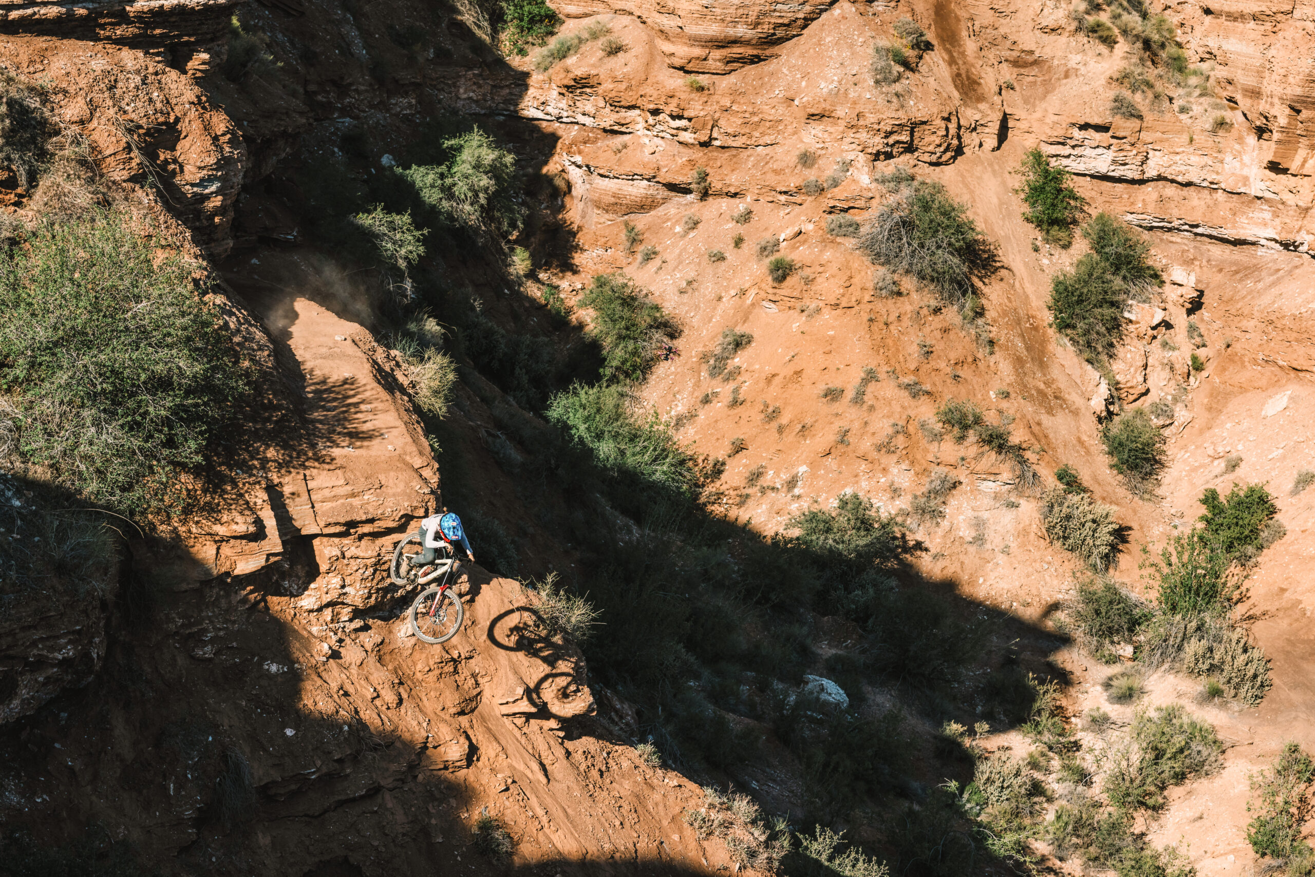 I caught this shot during the warm-up session for the final day of riding at Red Bull Formation. Casey Brown, Hannah Bergemann, Georgia Astle, and Veronique Sandler were practicing their line when I noticed this cool pocket of light on one of their drops. This was before the mayhem of their top-to-bottom runs, and I was the only photographer up on the ridge taking photos. Aside from the sound of spinning hubs and tyres making contact with landings, I savoured the stillness and photographed as they gained confidence on this feature. When Casey Brown styled it out for this shot I knew I had captured something special.