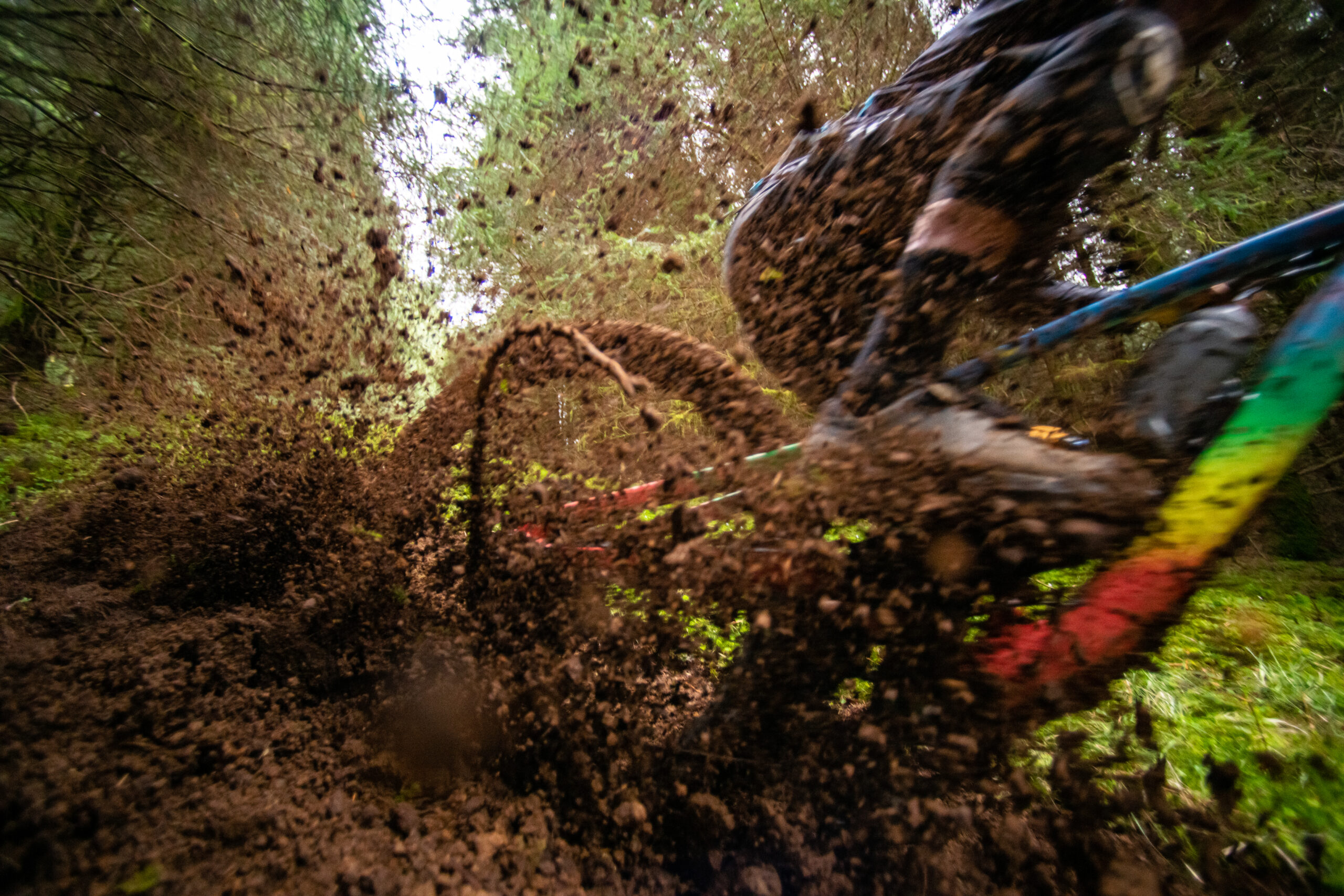 This photo sums up why I opt to shoot with Joe Barnes more than any other rider. The Top Chief has the body English to make the photos sing, has a bike lurid enough to pop even in one of Lochaber’s gloomy plantation forests and if you’re willing to get close enough, you can spend the rest of the day happy you got ‘the shot’ whilst picking Fort William’s version of loam out of your eyebrows, camera and pockets.