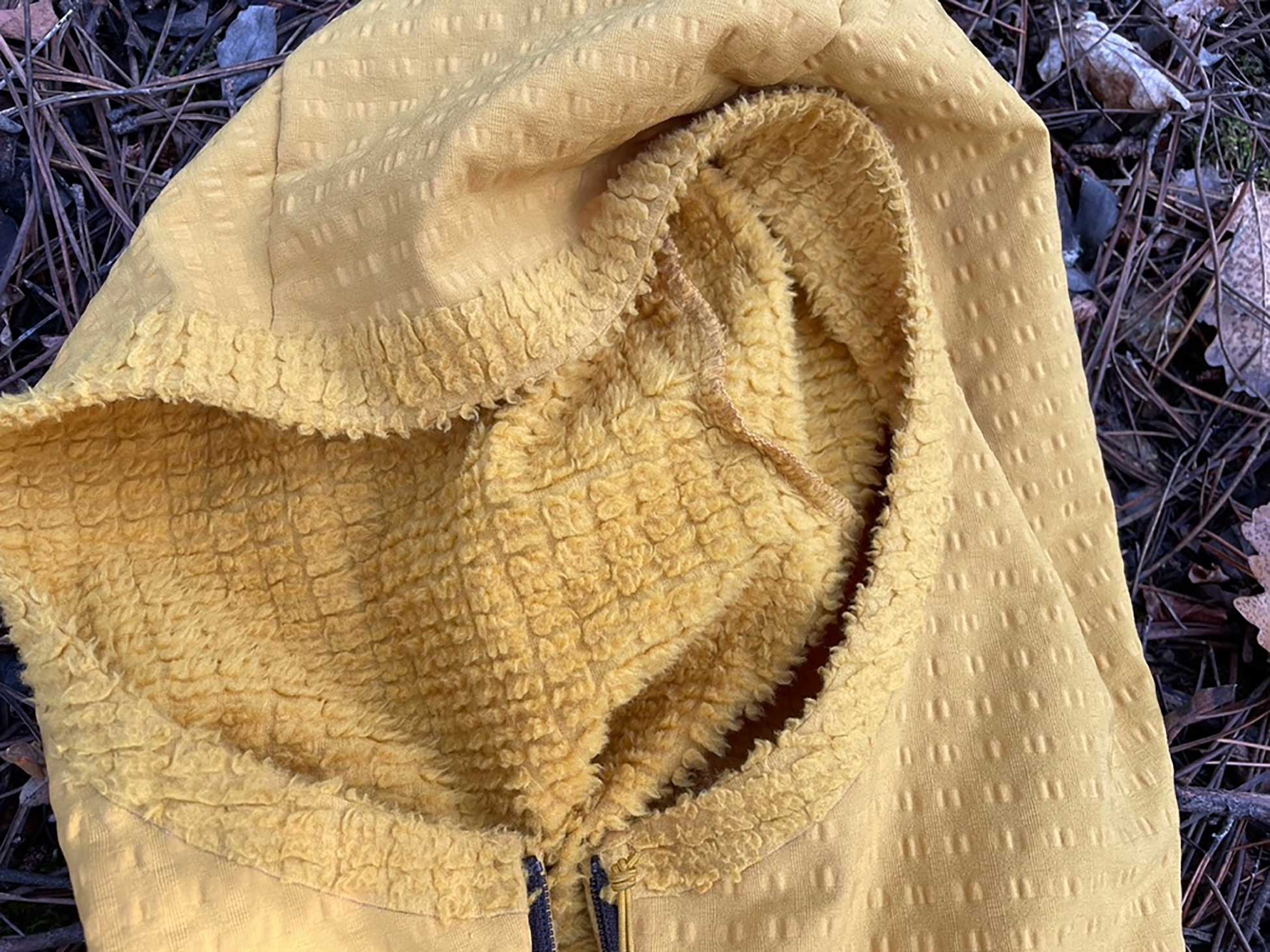 Inside the jacket is simply a very lovely place to be. There’s a super plush, waffle fleece lining the entire body and arms. There’s an instant feeling of warmth and calm when slipping it on. The waffle is soft enough to wear on bare skin, with a short sleeve base layer, perhaps, and it’s also smooth enough that you can pull it on without much of a struggle (unlike some first-gen softshells I have where you need a solid grip on your base layer sleeve to stop it from ending up around your elbows when putting a jacket on).