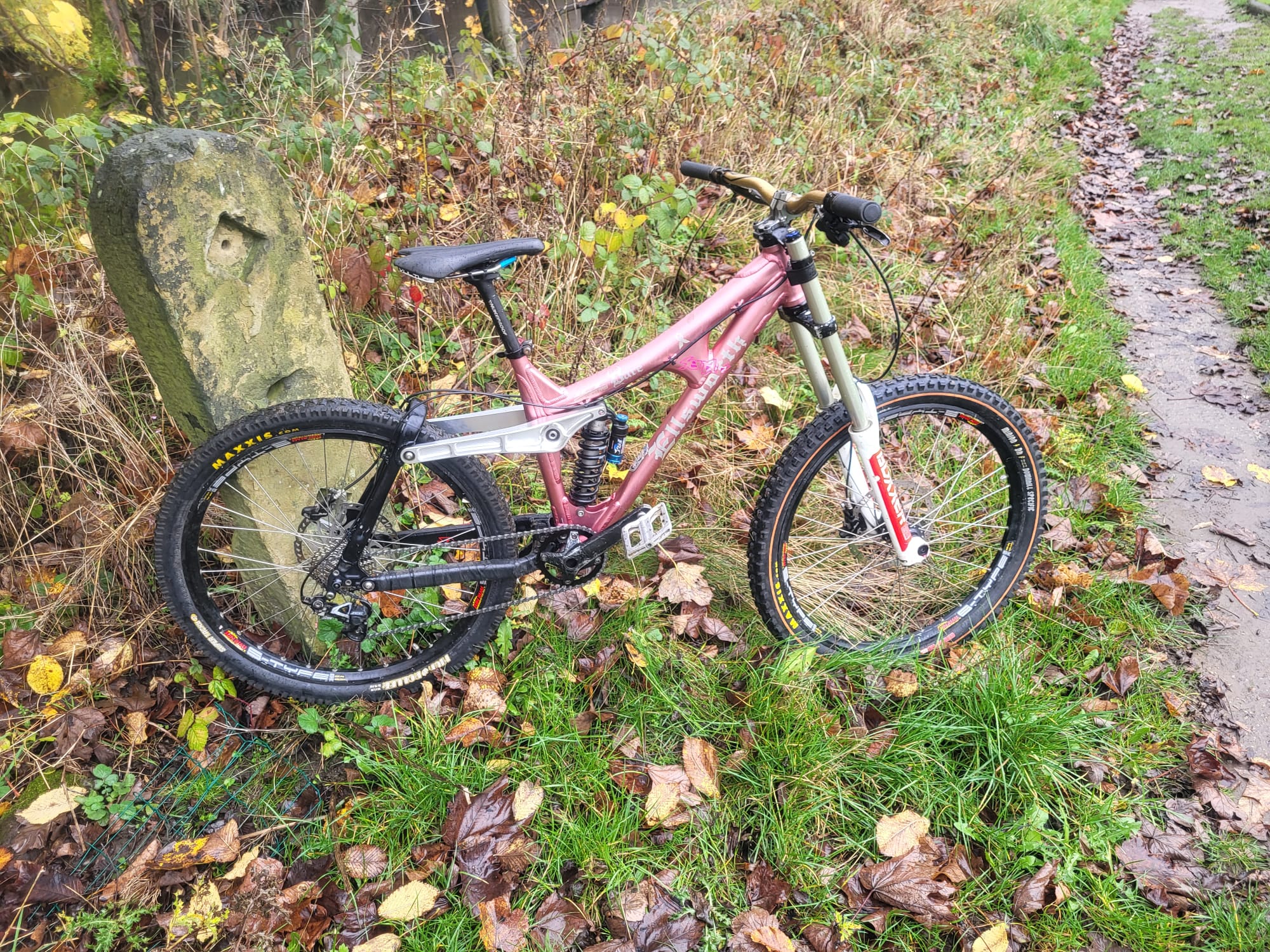 Oh and this rad old Ellsworth Dare, previously raced at World Cup by Jack Reading! In this rather fetching pink anodised finish to raise awareness for breast cancer research, It spent some of its later years in the loving hands of Richard Baybutt (@baybutt) from Cotic/Bolehills until he posted on his Instagram story that it was free to a good home! In YET ANOTHER case of bike shop serendipity I was the first person to message him and plead a case as to why he wanted to donate this awesome piece of MTB history to Happy Days.