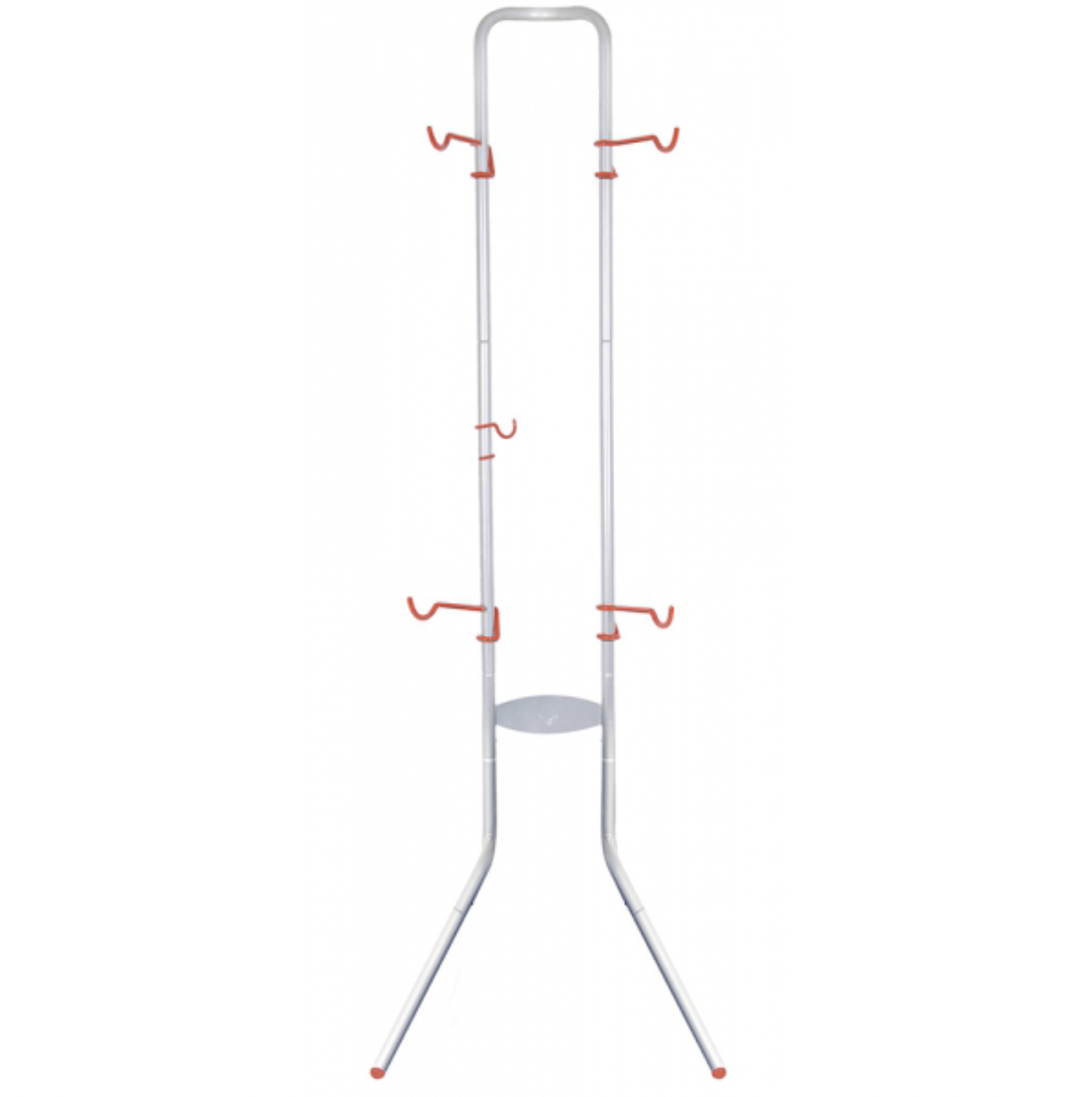 Description: “Easy to use ceiling hoist holds bicycles, kayaks, ladders etc to maximise your storage. Two-bike gravity stand simply leans against wall. Independently adjustable arms allow for any bike to be stored. Premium silver powder coated finish. Easy to assemble – tools included. Maximum load 80lbs (36kg). Dimensions approx: 213x50x40cm.”