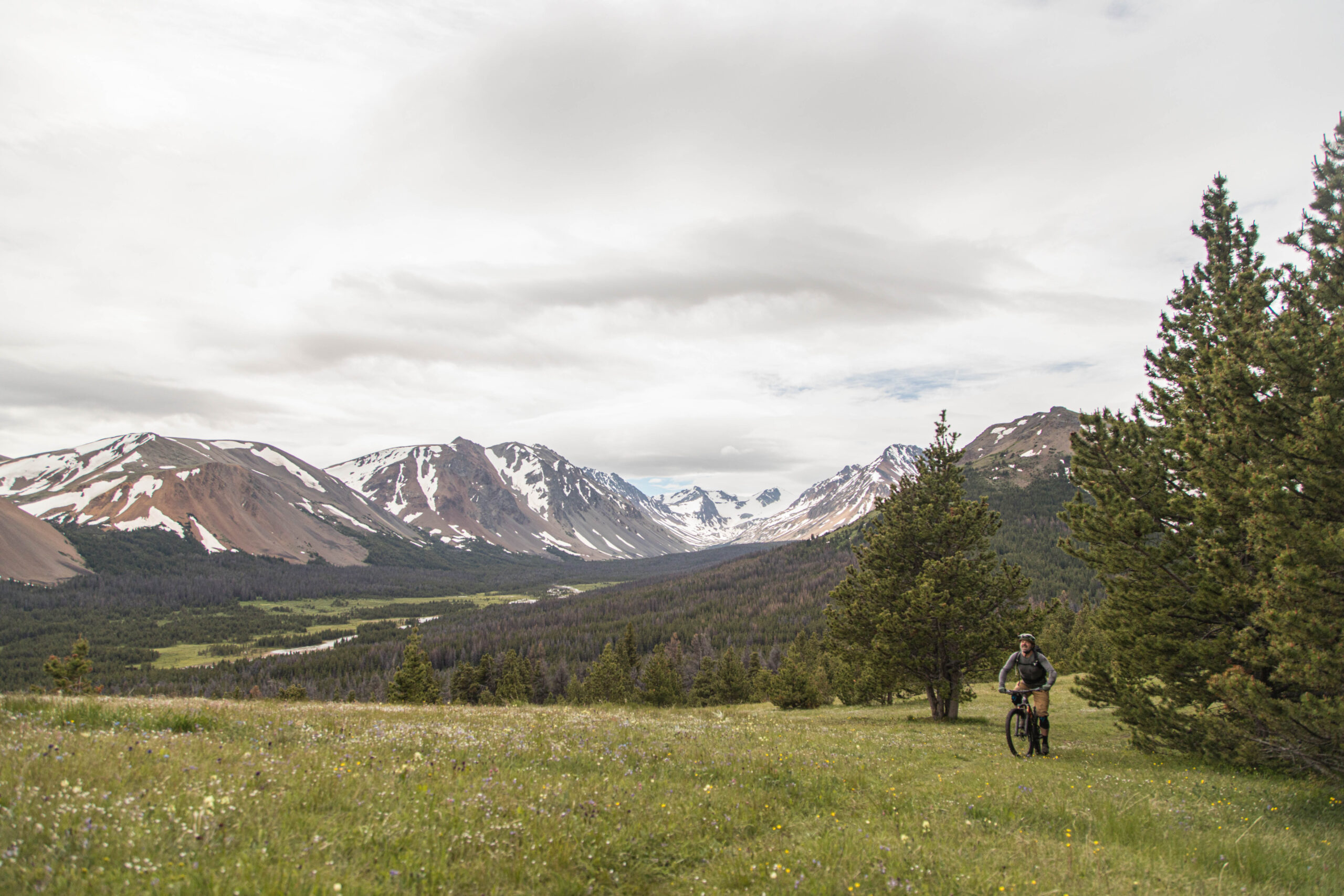 The descent down towards our camp at Bear Paw – all 2,000ft of it – is a glorious, once-in-lifetime ride. It feels like we’re in the forests of Endor. The tight, twisty singletrack has stumps, rocks and roots to fly over, grippy loamy dirt underneath and enough babyhead rocks to keep things spicy. At the top of the valley, we emerge from the woods into an open meadow, and one by one everyone falls silent. The rainbow of alpine flowers that carpet the meadows are so vibrant they feel painted on. This alone is a reason to be here – just this moment of beauty and wonder would be enough.