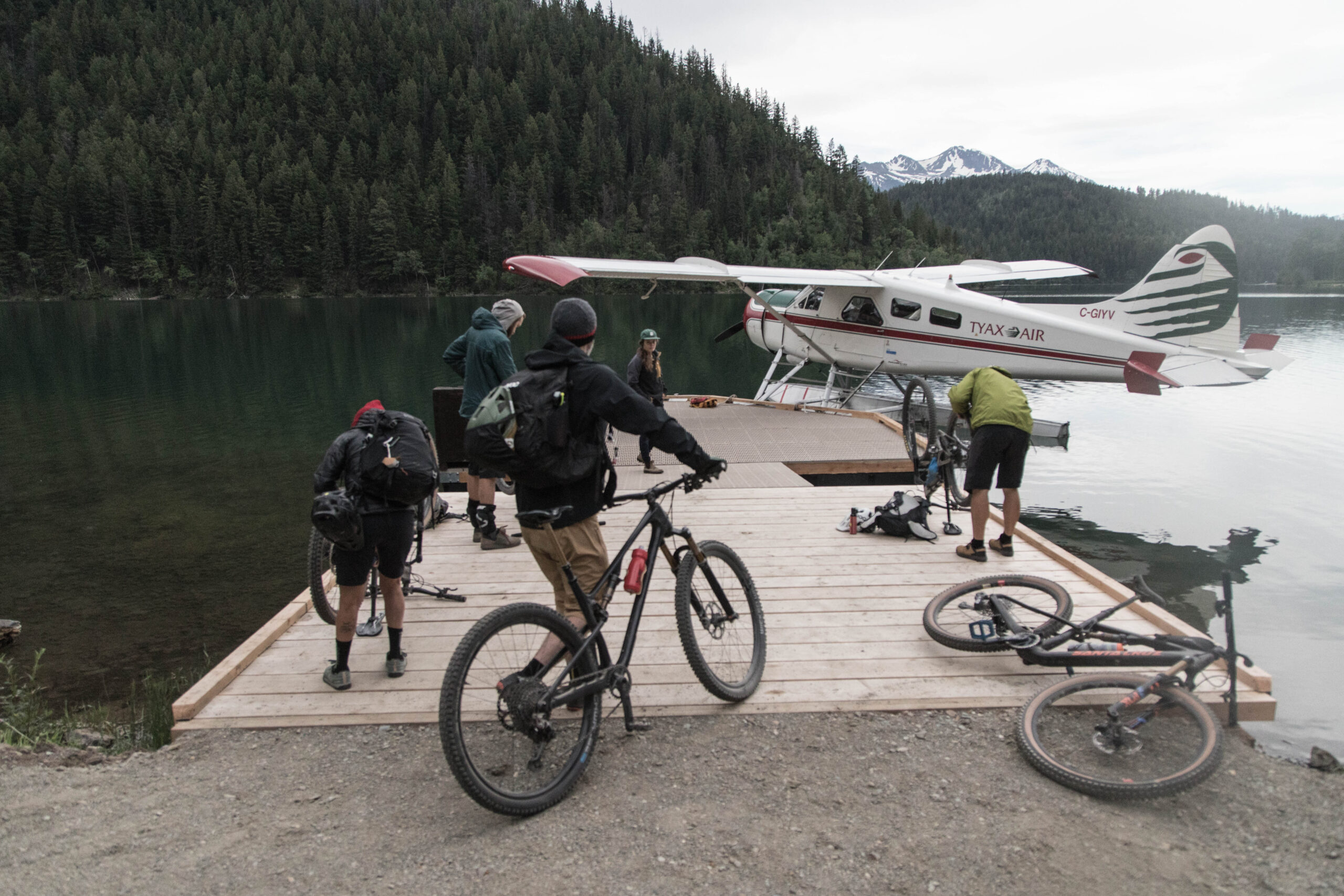 But handing five bike frames and ten wheels to a pilot, who puts them all into the tiny cabin of a float plane, before getting on said plane from a lakeside jetty, and taking off from that lake and flying into a scarily huge mountain range with no visible signs of human life? That’s top of the list.