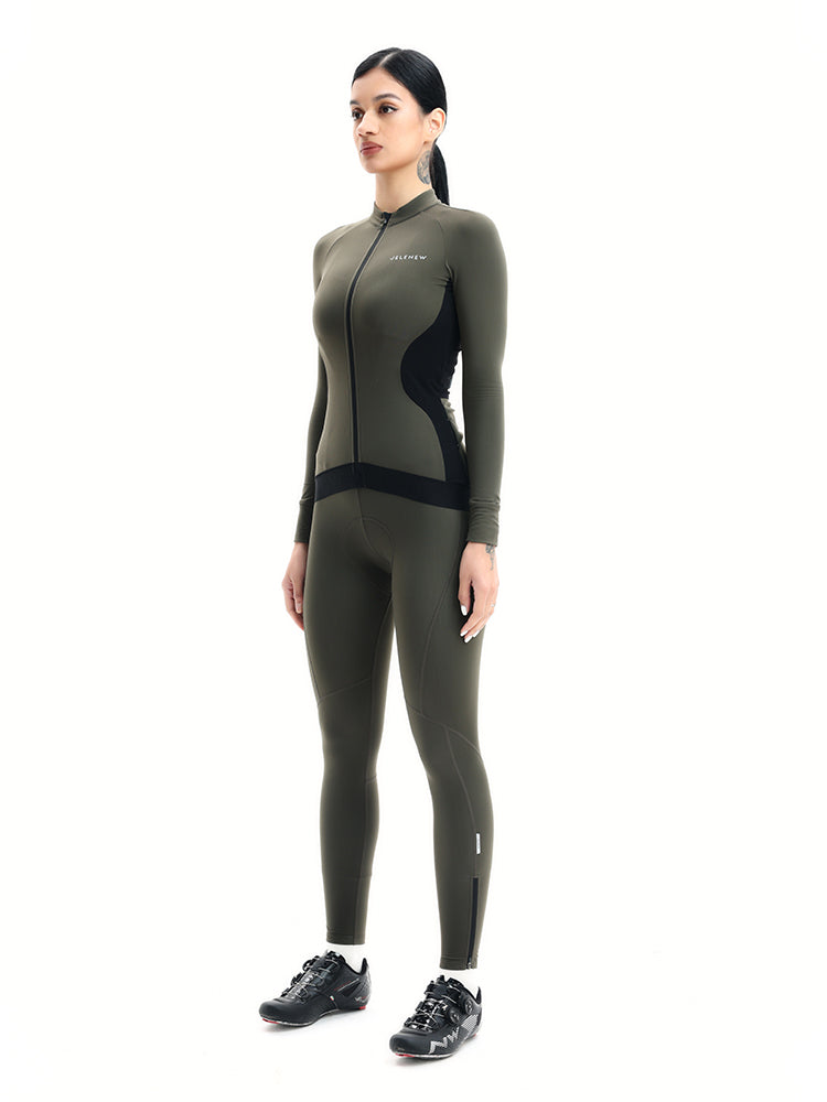 How to Dress for Winter Cycling?Warm, breathable, and quick-drying cycling pants are essential for cold-weather cycling. Recently, American professional women’s cycling brand Jelenew launched the new Momentum Brushed Thermal Bib Tights. These cycling tights are made from a high-quality soft-brushed fabric that optimizes moisture control, breathability, and durability. The unique interior surface is skin-friendly and soft-brushed and the exterior has a smooth appearance and soft-to-the-touch. Combining Jelenew’s unique haute couture drape tailoring, hip lifting design, and a 7-hour protective cycling chamois, these cycling tights are both functional and stylish, allowing female cyclists to enjoy winter cycling experience without fear of the winter chills.