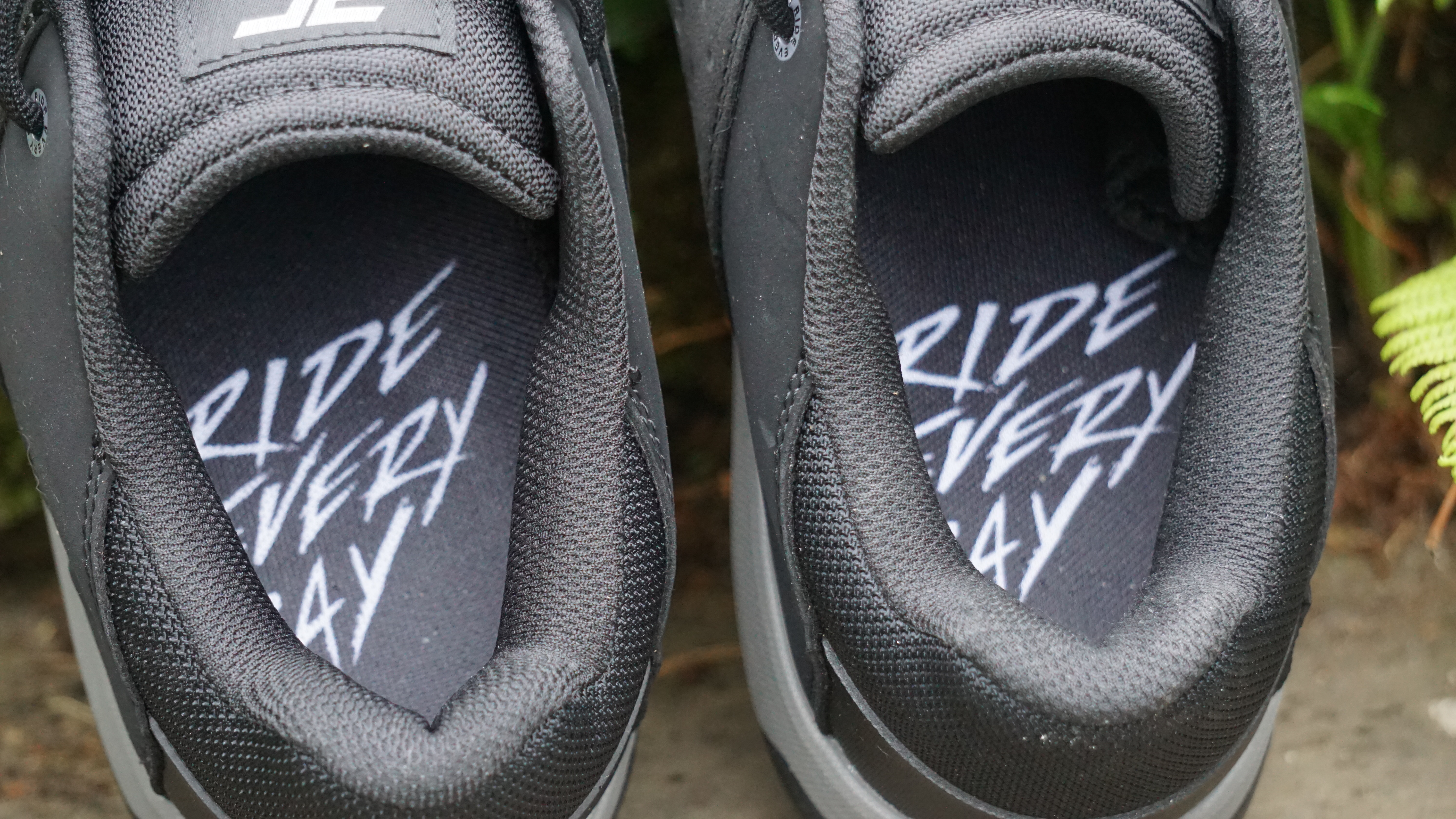 Walking in them is comfortable enough when you’re off the bike and pushing, and once they’re worn in there isn’t too much heel lift from pushing up steep inclines. The soles aren’t the best on steep muddy pitches though, but then this seems pretty elusive in any flat pedal.