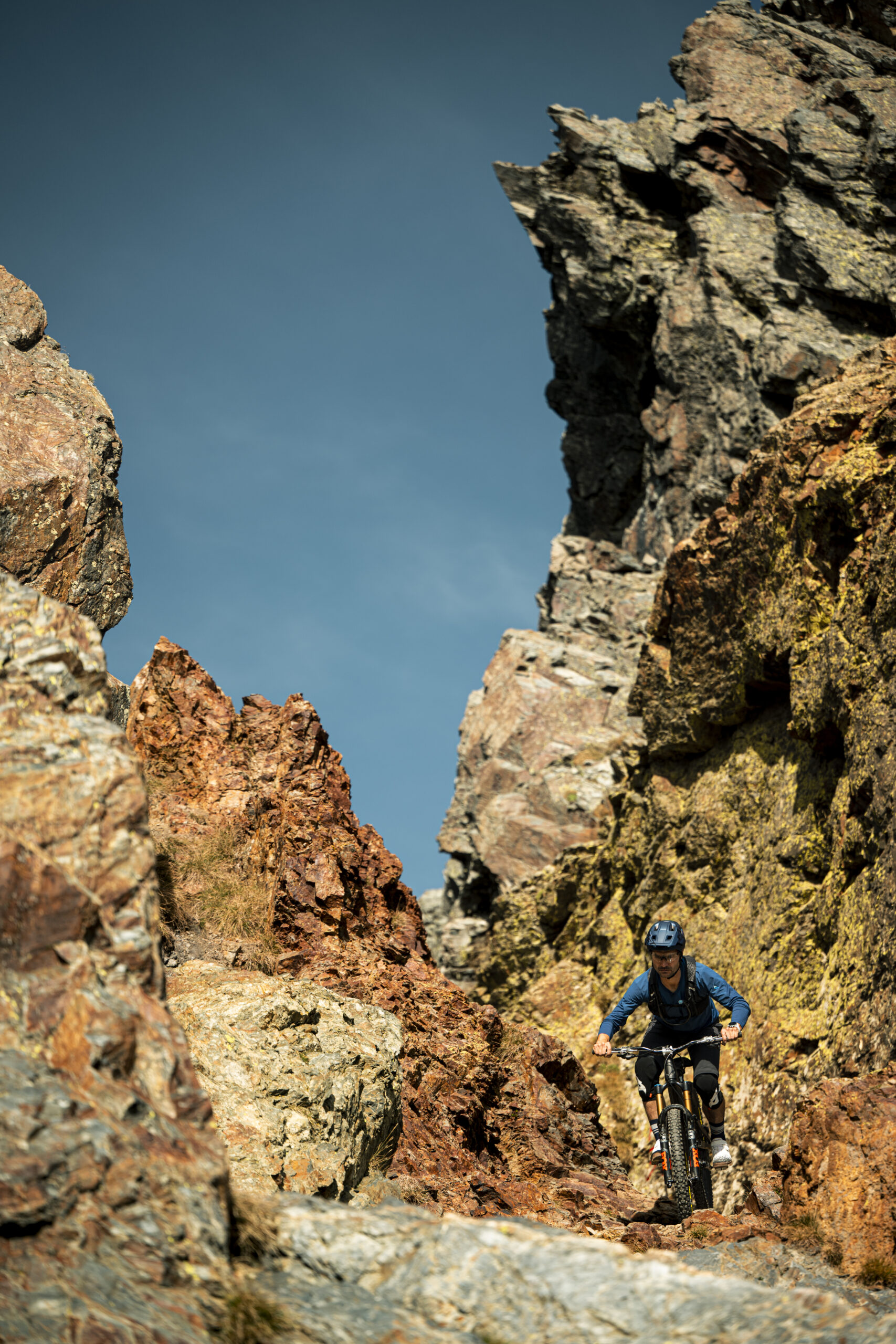 We then continue our journey through a splendid and well-maintained track allowing us to sneak amid those hostile rocks. However, it is crucial to stay careful as we start to go increasingly faster, and the wind is sometimes unpredictable on the ridges. We strongly advise against taking too many risks for it is not easy to find service and even more to find help…