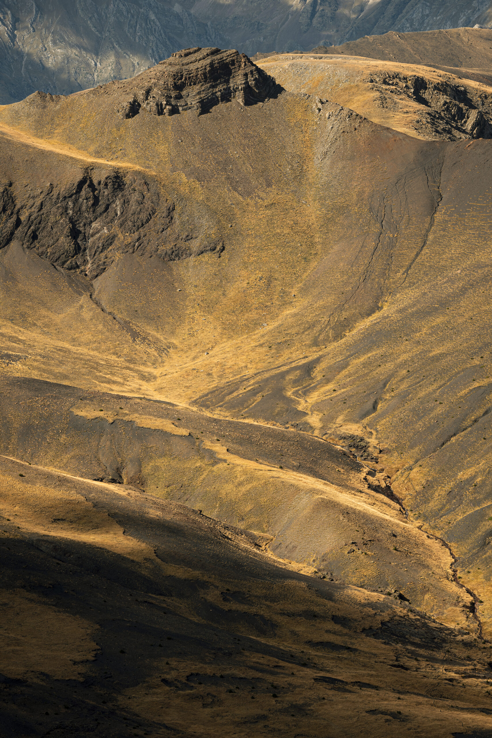We planned to meet to finish off this journey with the Gallinero, a peak at the south of the Maladeta massif, culminating at 2 700 meters. We will not start from the summit but from a pass allowing us to do a very beautiful descent leading near Castejon. The view makes it possible for us to contemplate the plains of the south that are more shimmering than the north with less abrupt landforms. Anthony feels way less oppressed in this area which is all in roundness and softness.