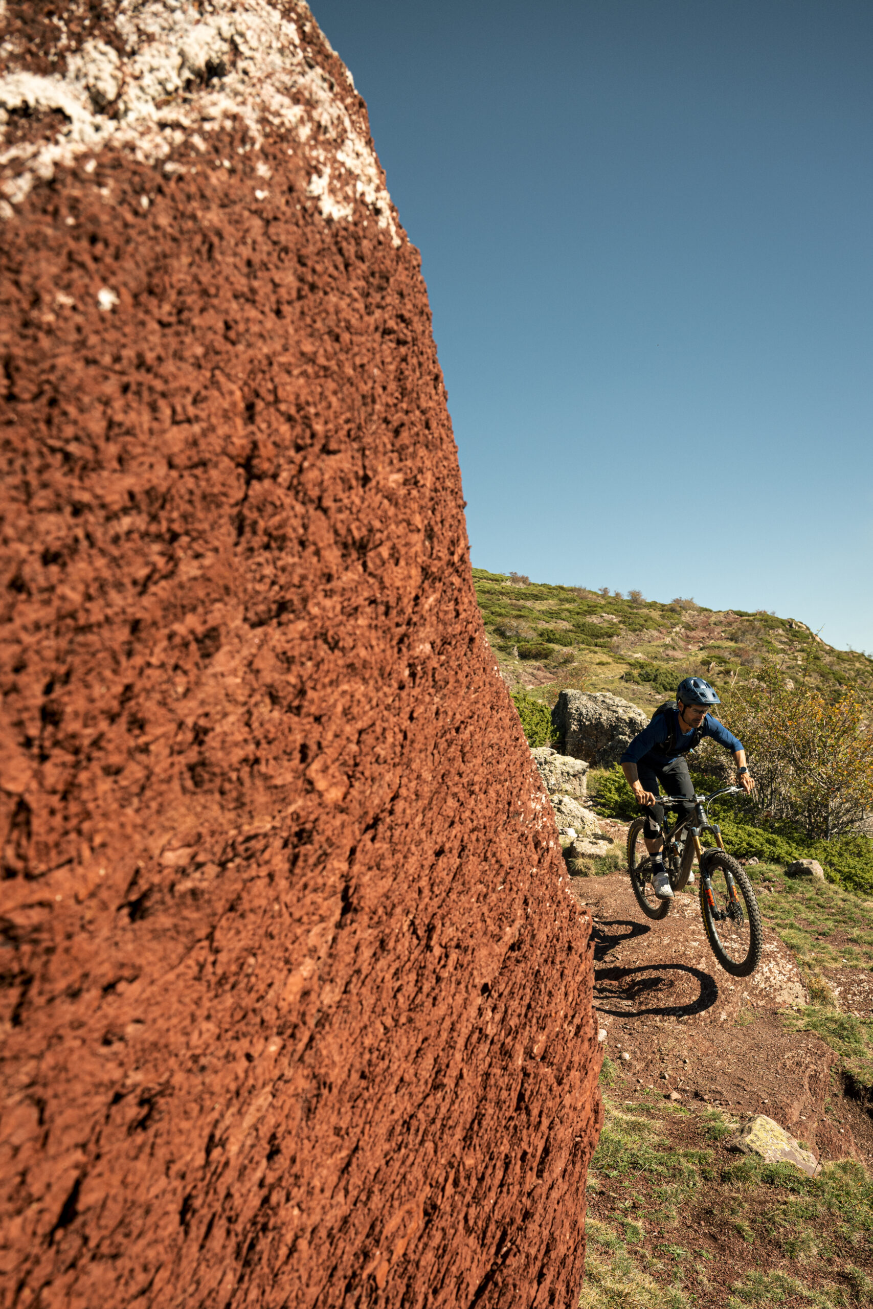 The descent awaiting us allows very little time to go through totally different landscapes. We are riding in a mountain pasture to then cross a blood-red rock and eventually finish in more yellow and black lands, with taller vegetation but of a less Mediterranean style.
