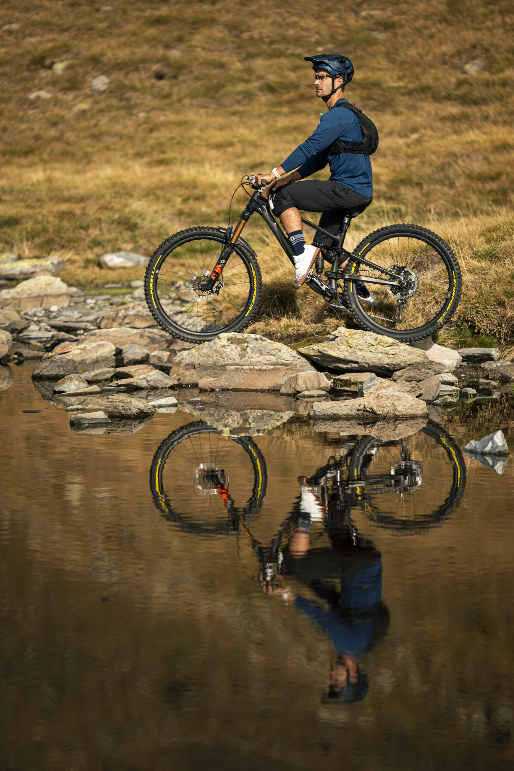 We chose to go near Benasque in mid-October as it is one of the moments when the light is the most beautiful and when the trees are starting to get more and more colorful. The weather is usually mild during this period; indeed, we rode only wearing a jersey during the day. We only had to take out the jackets in the morning at sunrise, though it was usually the moment when we would start going up the mountain, riding or pushing our bikes.