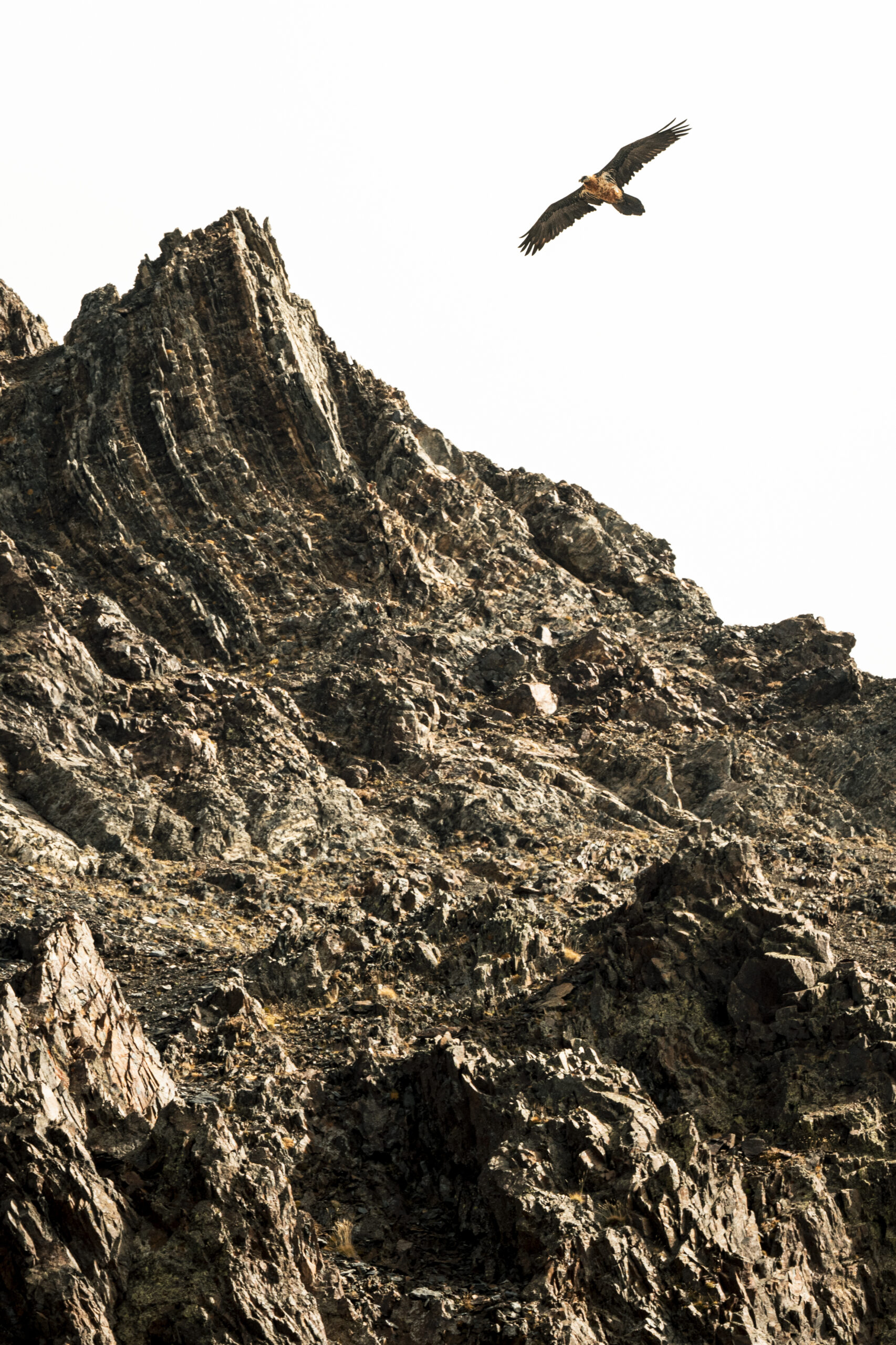 Once arrived at the pass, it was worth it. We finally reached the beginning of Sierra Negra. It is a sort of black and fire-red desert with, as background, the Aneto. We are once again accompanied by the lammergeiers signifying to us that we are on their territory.