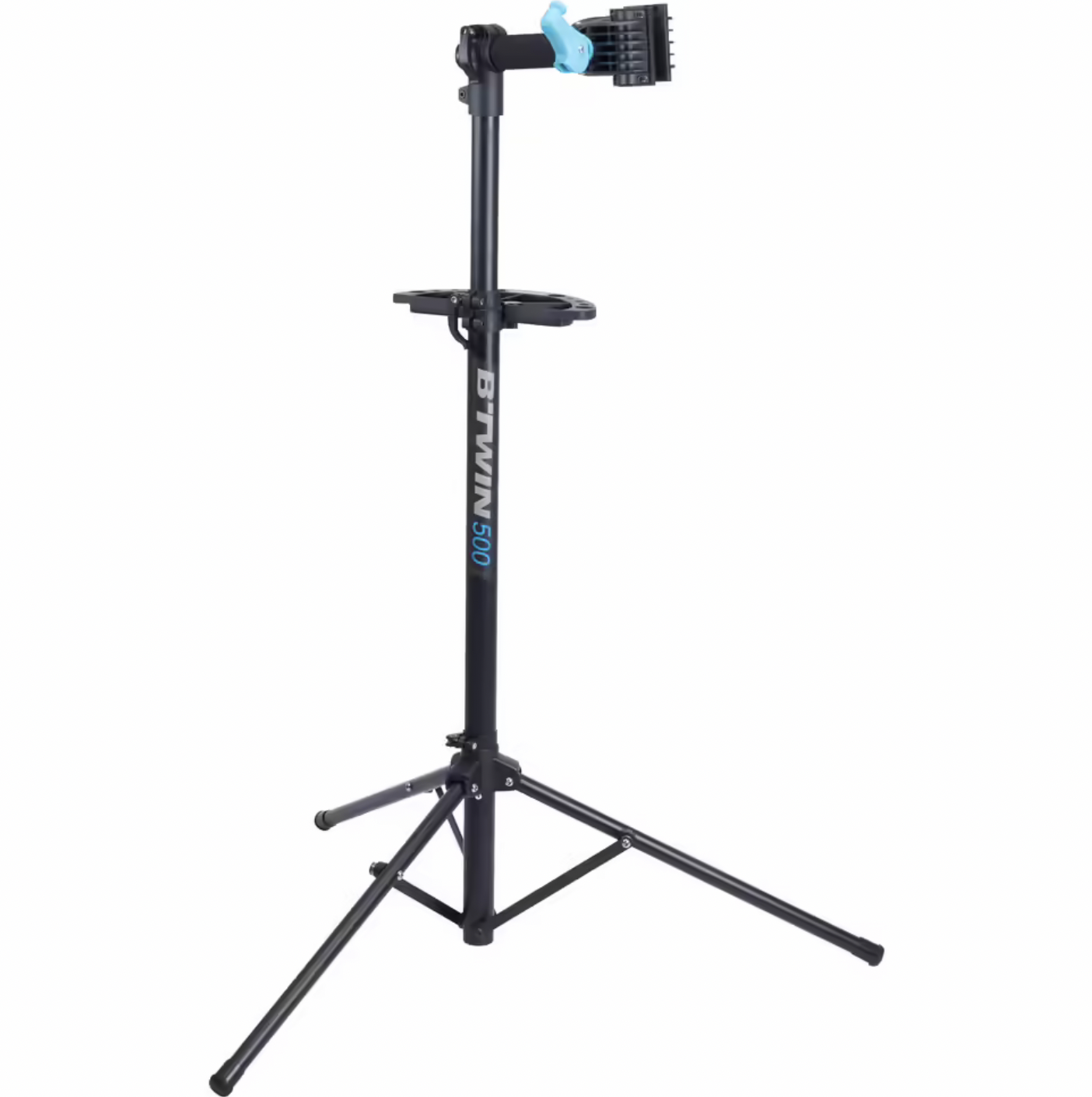 Unless you’re working on bikes every day and/or all day, you don’t really need a megabucks workstand. Sure, fancy stands have quicker/better clamps and a general degreee of sturdiness to them, but for at-home occasional duties, own0-brand workstands like this one from Decathlon are fine.