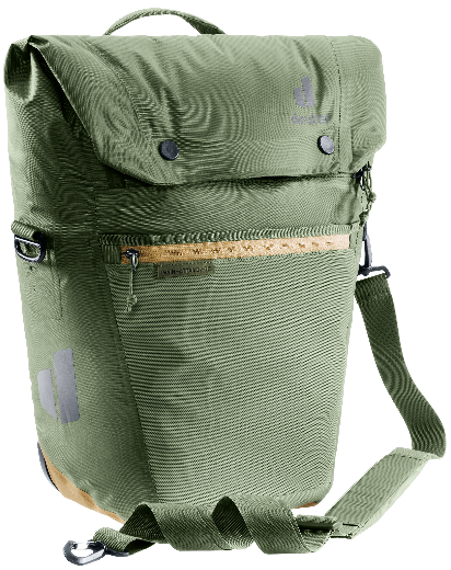 Both packs are equipped with deuter’s new BagFix system, which leaves your free to pedal in peace, with the bike bearing the brunt of the load and nothing on your back. Attached using two mounting rails and hooks, it keeps your pannier safely attached to your bike rack. At your destination, a quick pull on the release handle and the bag is detached and ready to use as a shoulder bag.