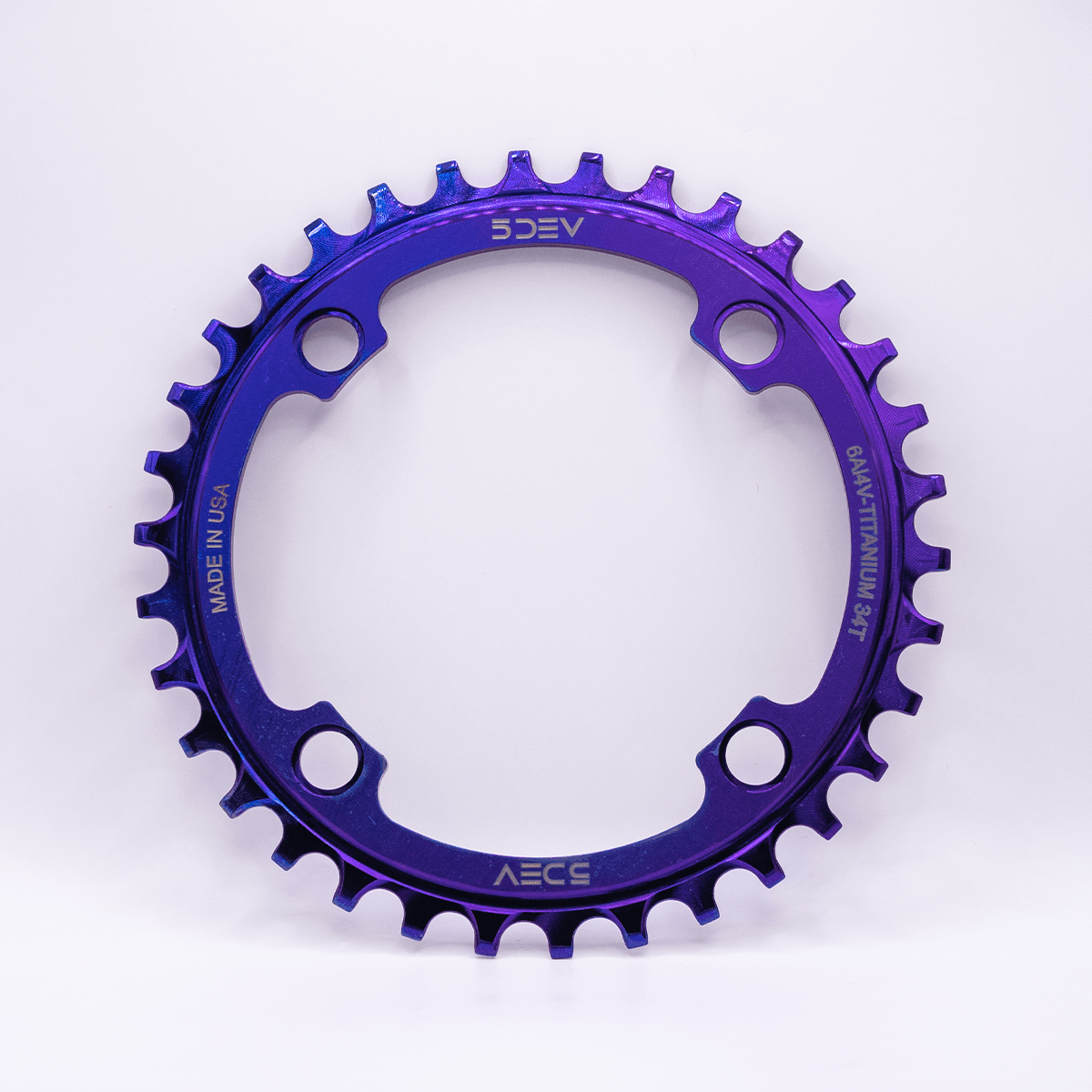 Designed, engineered, and machined in San Diego, California out of 6Al4V Titanium. Ideal for use with OChain, Ebikes, and 4 Bolt 104BCD Spiders. 5DEV Ti Chainrings provide at least 3 times the durability and longevity of your aluminum ring. This results in more time riding, less time replacing parts, and less waste. Designed to work with both SRAM and Shimano 7(DH), 11, and 12 speed.