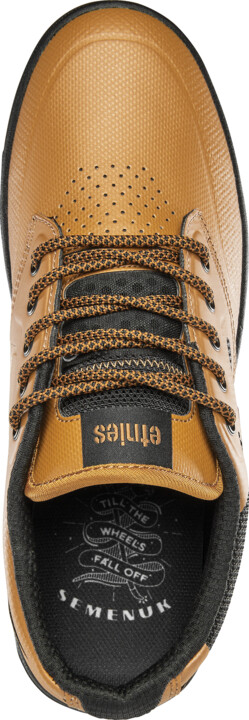 etnies is proud to announce its new high-performance vegan Semenuk Pro MTB shoe is now globally available. Designed by Brandon Semenuk himself, the copper colorway is made with an animal-friendly synthetic mesh and TPU. Featuring Formula G rubber on the sole, the shoe is formulated specifically for the rigour of flat pedals. The tread pattern is made for multi-placement pedals with a Force Shield reinforced upper. etnies has combined animal-friendly materials with quality and performance – the Semenuk Pro MTB shoe.
