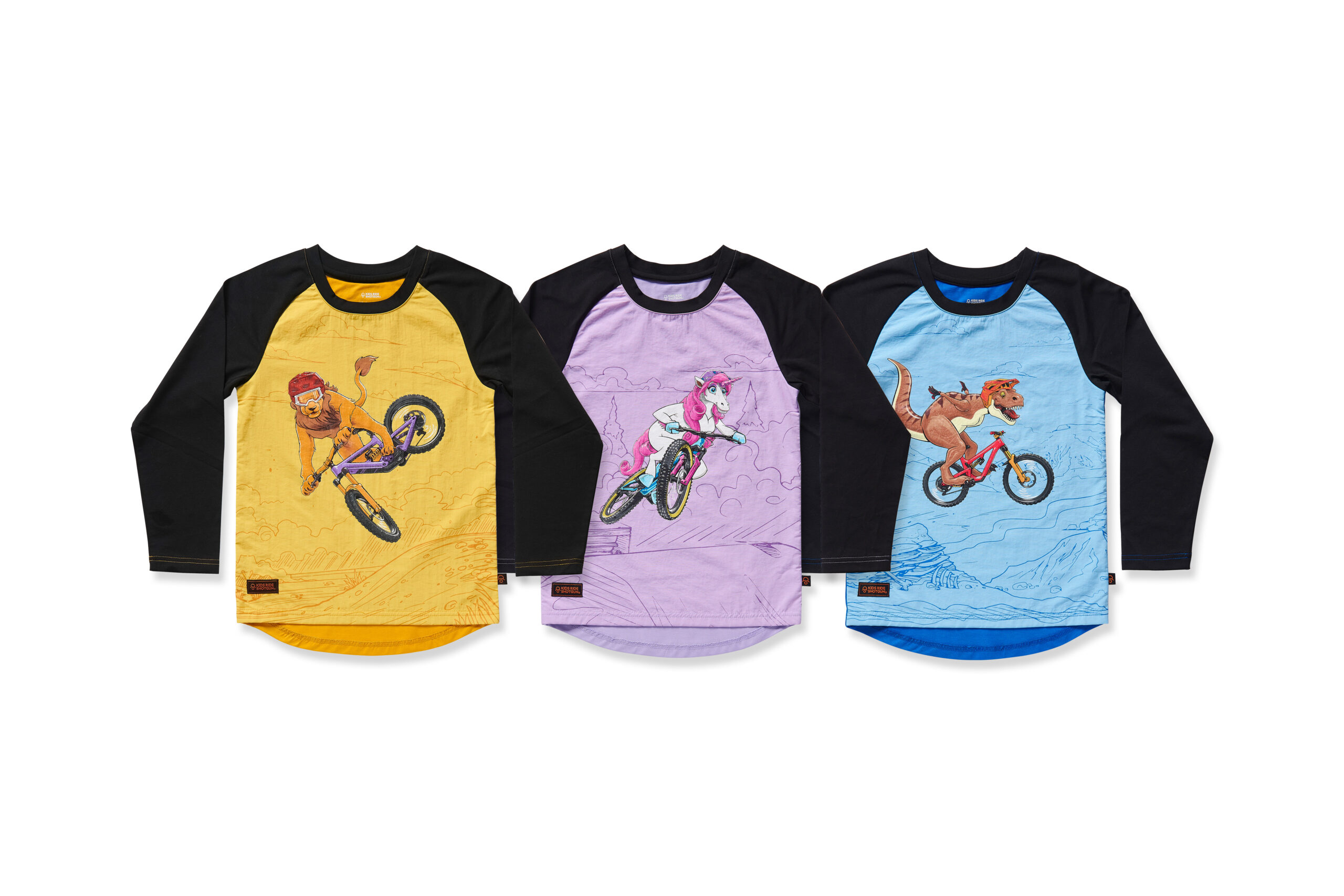 “For kids apparel, we really wanted to do something to get kids pumped on riding – we wanted to do something that looked MTB, but also something that kids could connect and relate to, and wasn’t just a downsized version of an adult riding jersey.” – Dan, Kids Ride Shotgun