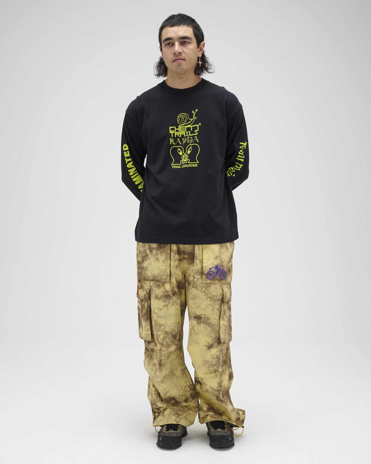 This collaboration was born from a mutual love for being outdoors and an understanding of nature’s role in shaping the experience of mountain biking. the resulting collection captures the spirit of the subculture of mountain biking, merged with the playful vibe of the Brain Dead universe.