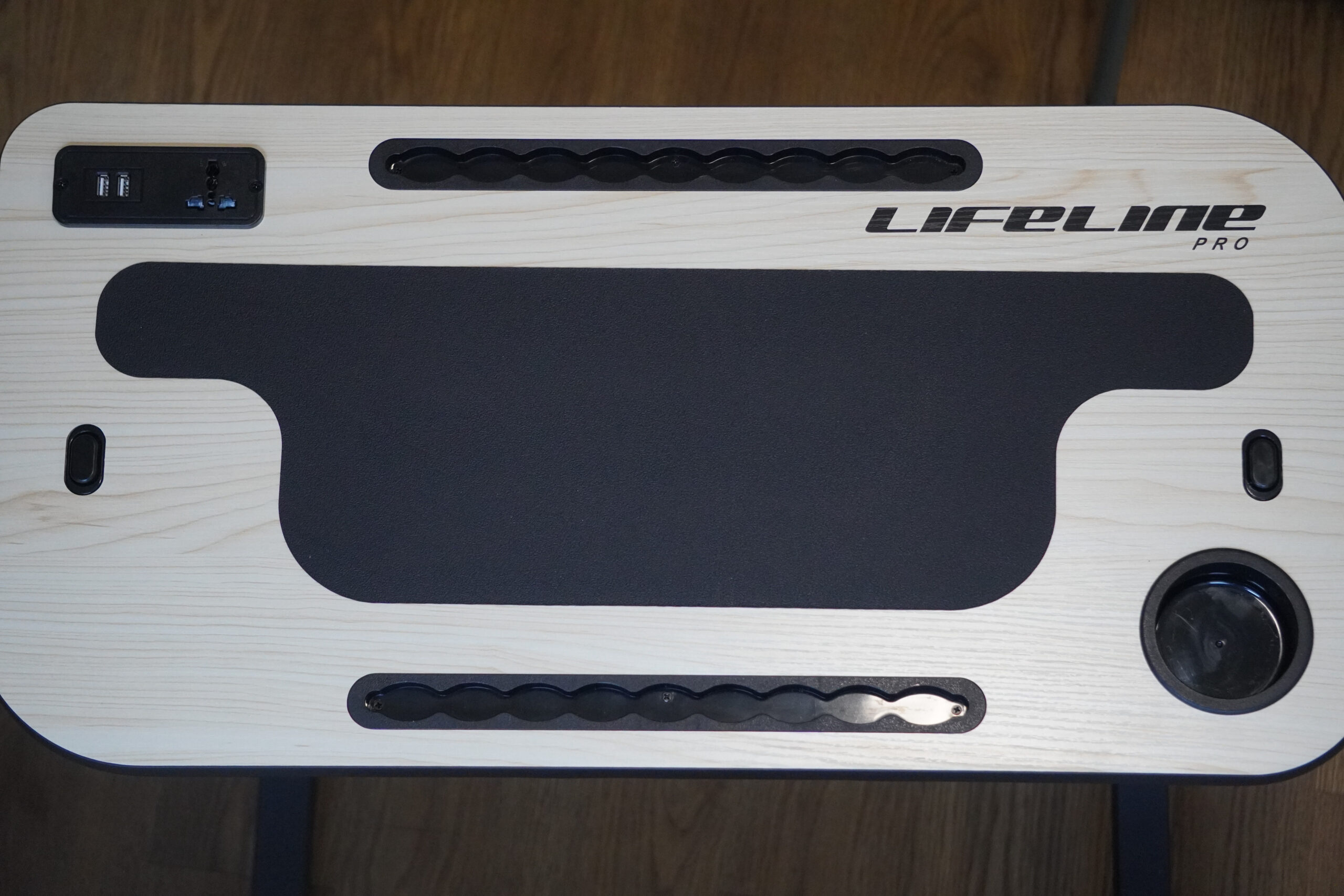 I’m not convinced the sockets on this are worth it, since you still need to be near a power source to plug the table itself in. But I do like the drinks holder and the phone/tablet holder than angles a Kindle perfectly for reading and riding.