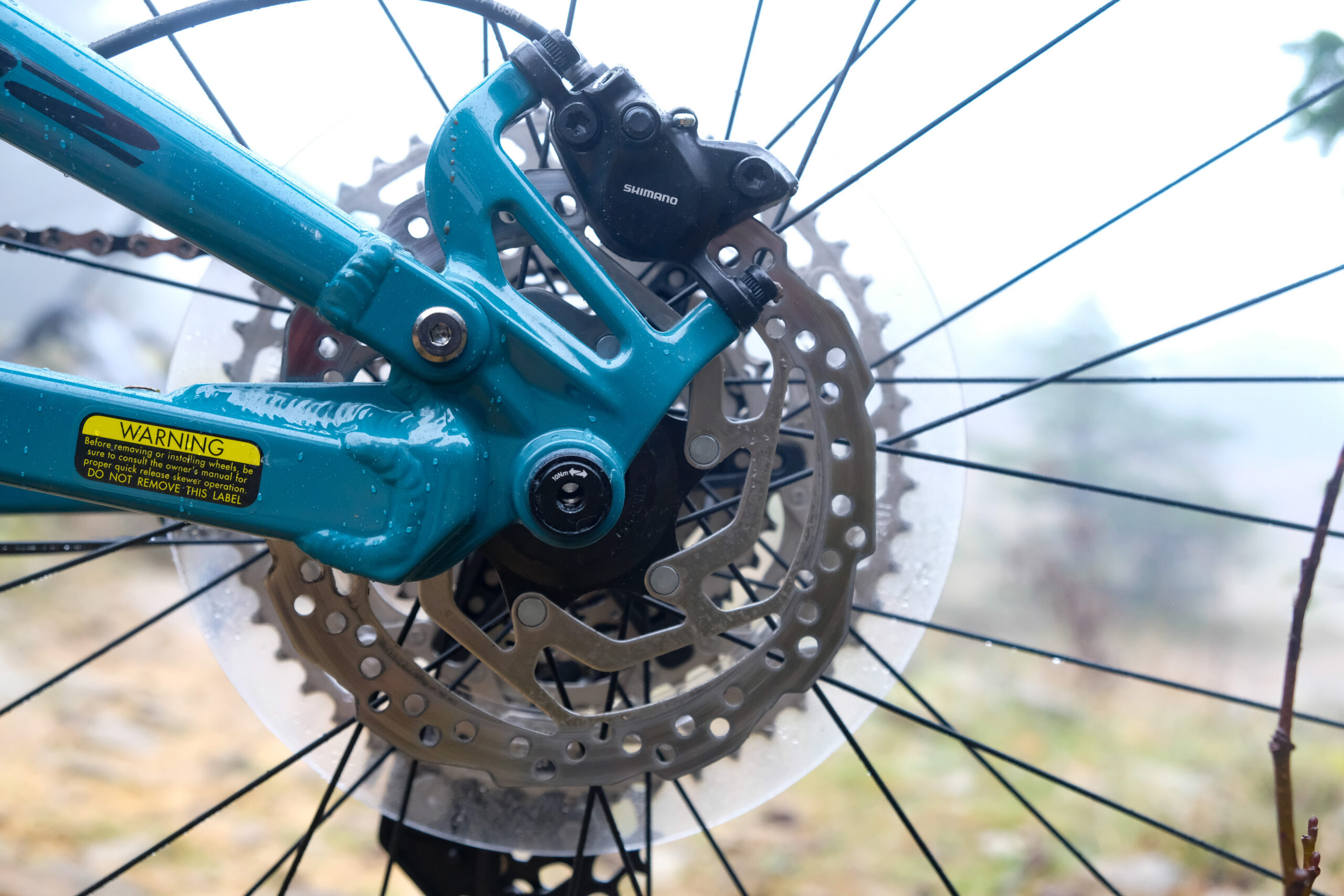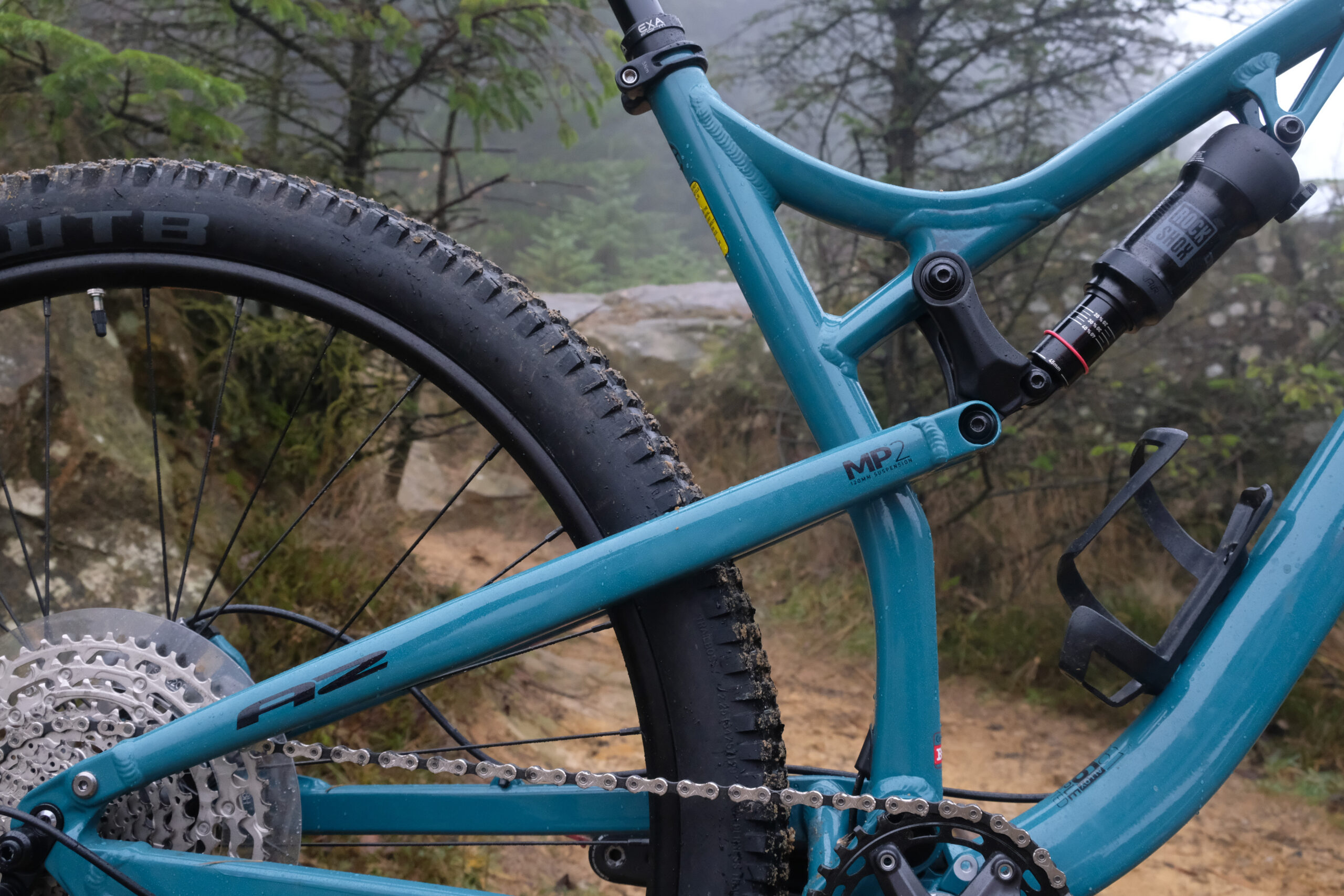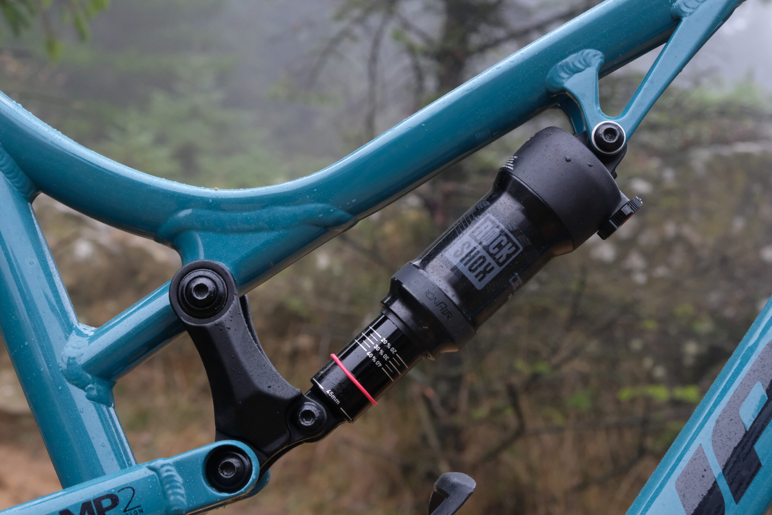 The frame itself is well put together with nice welds and decent looking pivot hardware and swinglink. The stuff specced on the frame to build it up into a complete bike is not exactly bad, but… there are some items that don’t quite cut it when compared with bikes that cost a bit more (NB: this bike never really sells at £1,800 – it’s better to think of it as a sub £1,500 bike). We’re not that bothered by the use of ‘just’ an 11-speed drivetrain because wide range 11-speed gearing is perfectly fine. The cockpit stuff is actually OK. The WTB tyres are decent. But the RockShox Recon Silver fork and the Shimano MT200 brakes (with resin-pad-only rotors) are both things that reek of cost-cutting and both will involve significant expenditure to upgrade in the not overly distant future.