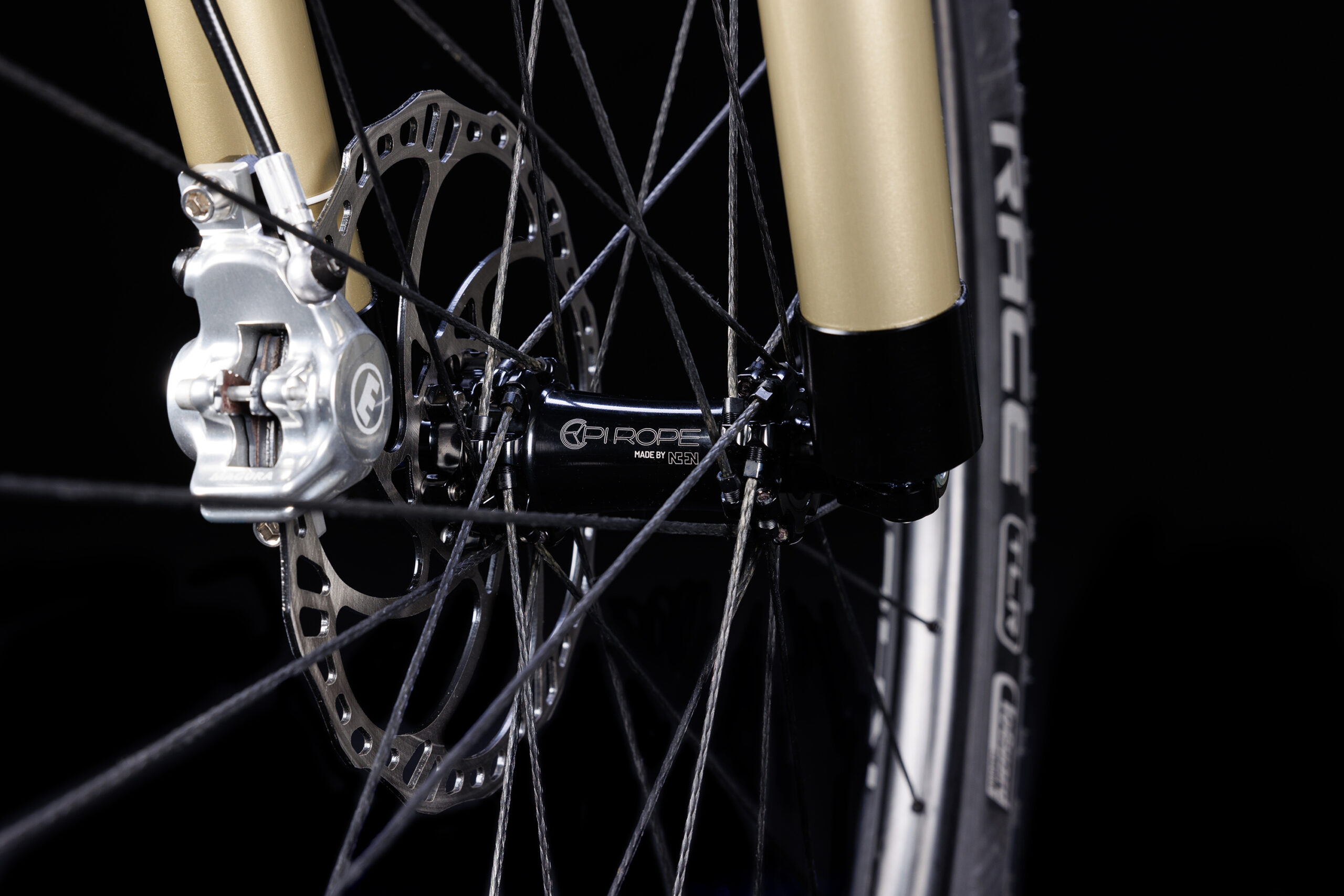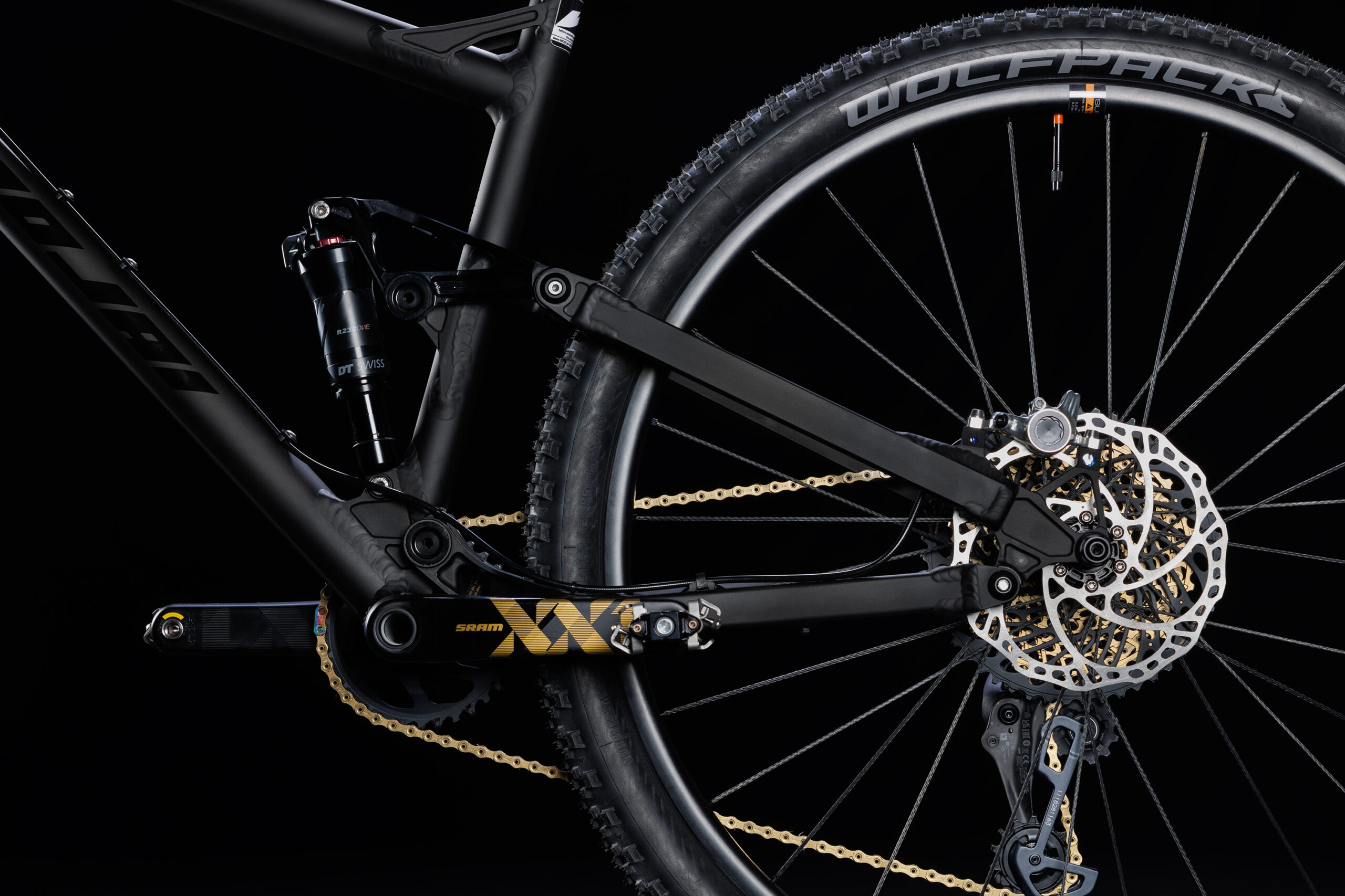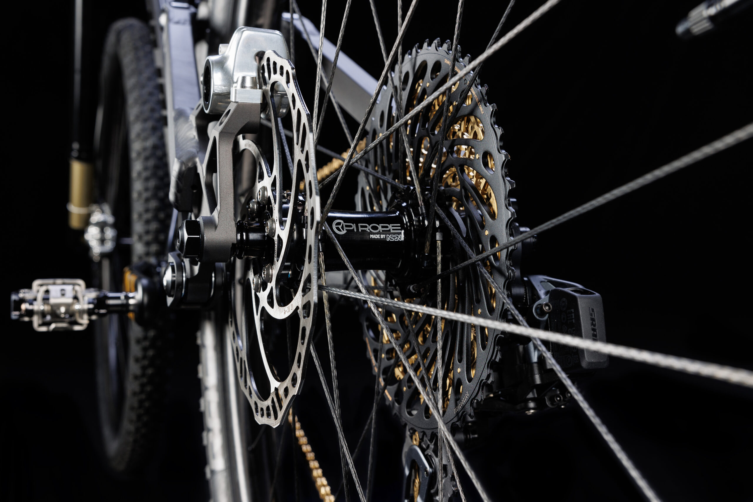 On the Saturn 11 SL, the all-new ultra-light Intend Samurai XC upside-down fork with 120mm travel is deployed for the first time: like the Saturn frame, this fork is 100% designed and manufactured in Germany. At the rear, a DT Swiss R232 ONE is found providing calmness, traction, comfort and 105mm of travel. Another highlight of this bike is the wheelset from Pi Rope, also manufactured in Germany, its spokes are made from Vectran textile fibers and is exclusively presented on the Saturn