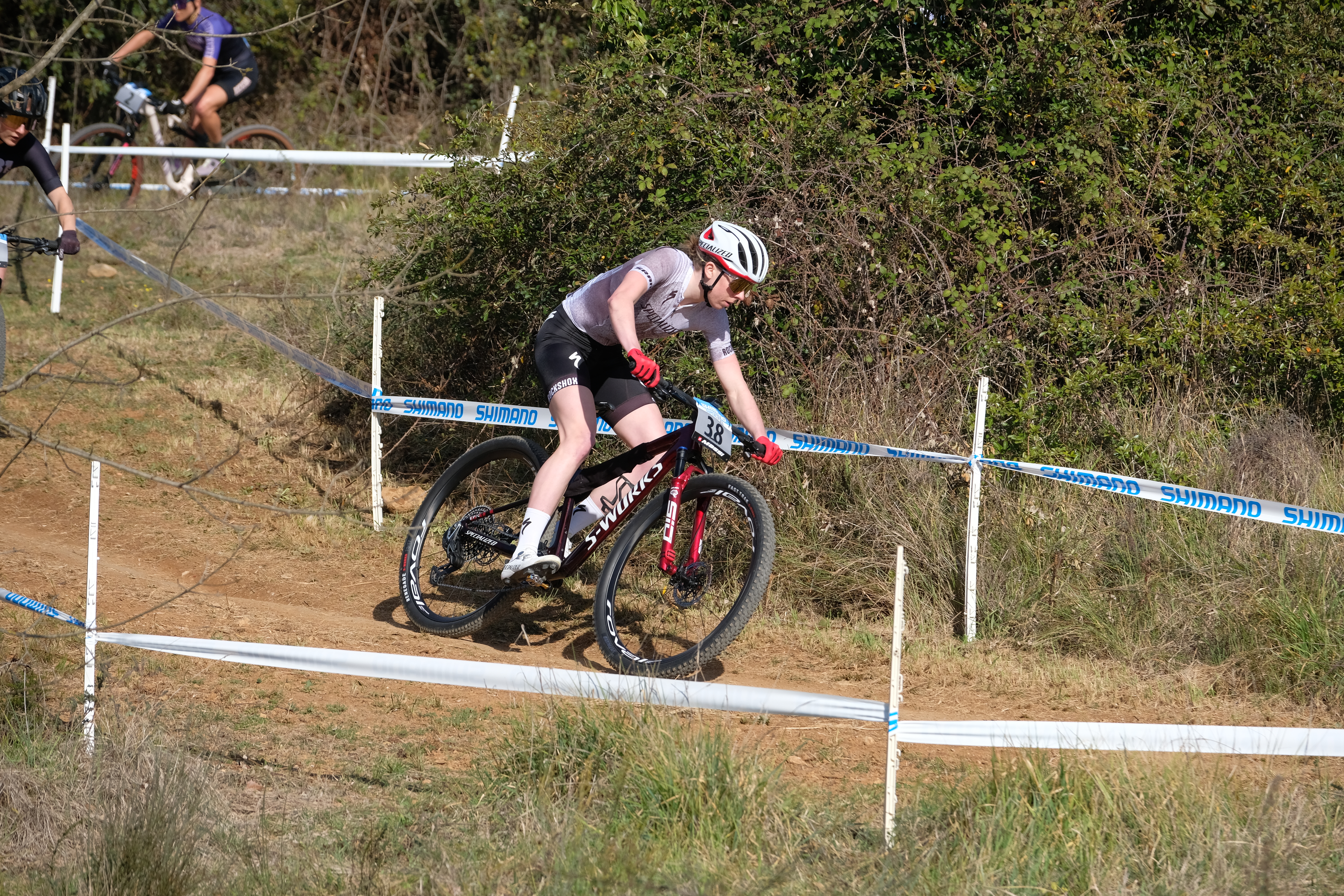 Hiding in plain sight – in the top five of the Women’s short track event was a ‘secrecy wrapped’ new bike from Specialized, with its suspension gubbins hidden from view by a neoprene sheath.