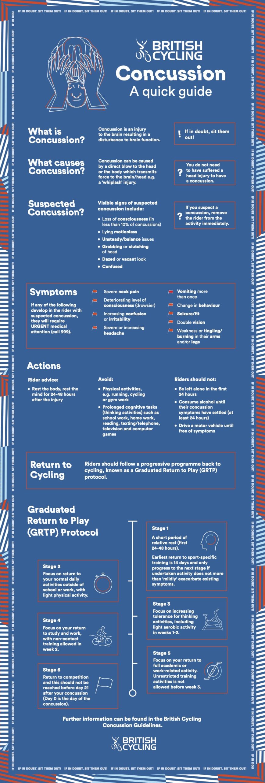 Concussion research continues to evolve rapidly, and therefore these guidelines will be continually monitored and updated as and when required. For more information about our regulations and policies, email techregs@britishcycling.org.uk.