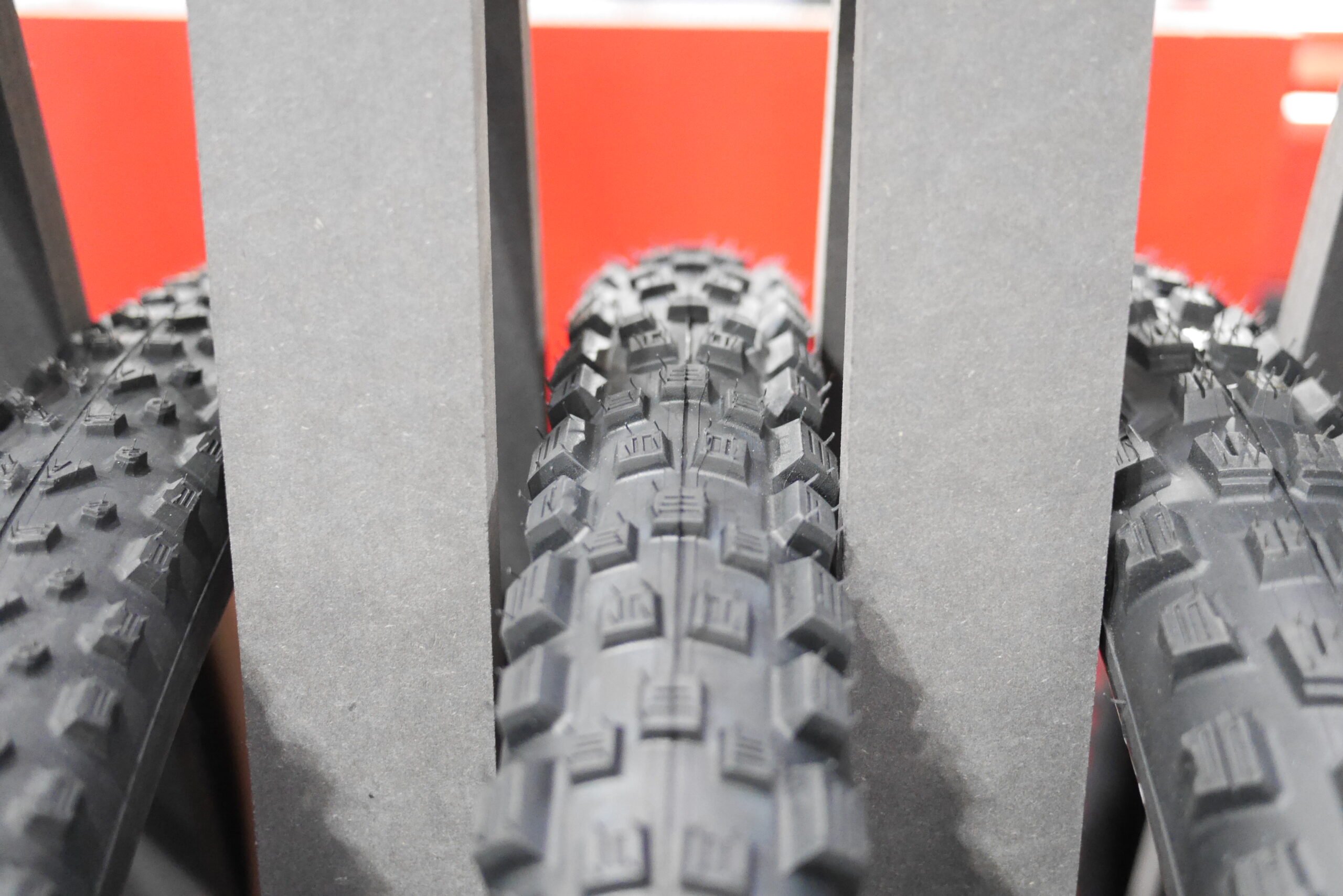 Vittoria Mazza. It must be annoying as a tyre brand to constantly have your tyres explained by comparing them to MaxxiSchwalbe tyres but… that’s just the lingua franca of rubber we’re afraid. The Mazza can be thought of as perhaps a modern modern version of the venerable Maxxis Minion DHF. Or maybe a chunkier Specialized Butcher..?