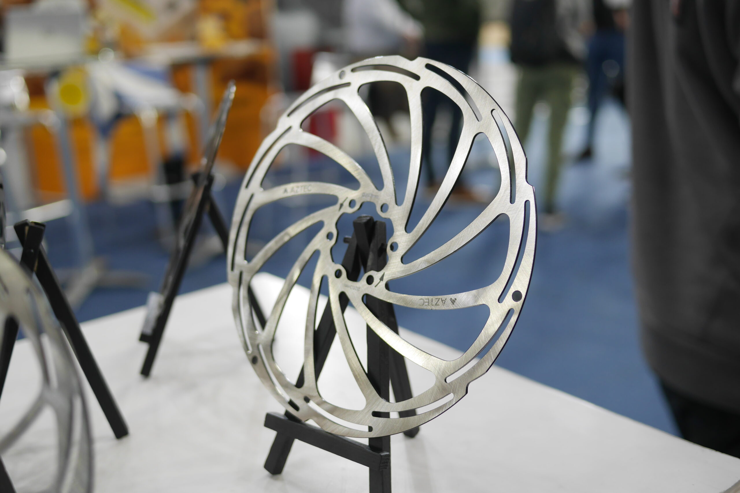 New rotor designs from Aztec. I had no idea that Aztec are actually an in-house brand of Madison. Aztec brake pads have been around since I started MTBing back in the previous century so I’d always assumed they were a standalone company. Anyway. New rotor. Looks like it’ll be a good ‘un. Available from 140 up to 220mm size. No super thick ones just yet. These are regular sub 2.0mm jobbers. The black dots on the braking surface are wear indicators; when they’ve disappeared, it’s new rotor time.
